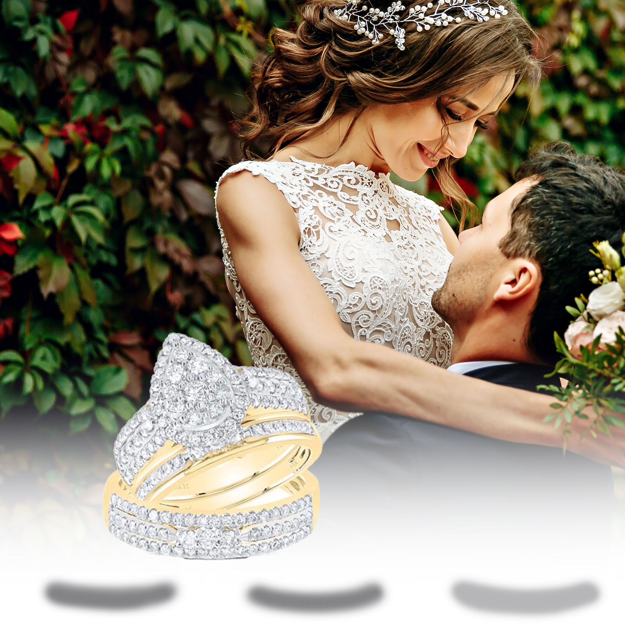 Celebrate your love with the perfect wedding band trio! When you purchaseher wedding band,his comes as a gift—completely FREE!