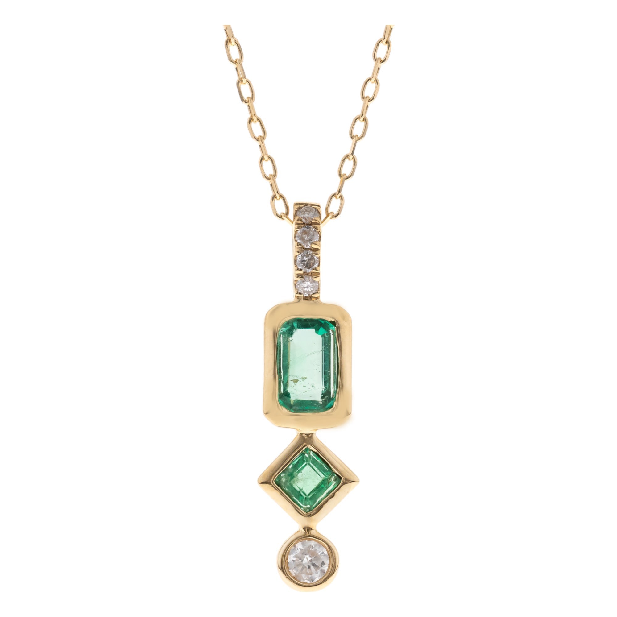 Add a touch of luxury and opulence to any outfit with this stunning 18K yellow gold necklace. Adorned with 0.26 carats of rectangular cushion emeralds and 0.08 carats of round diamonds, this necklace exudes elegance and sophistication. Elevate your style and make a statement with this eye-catching piece.