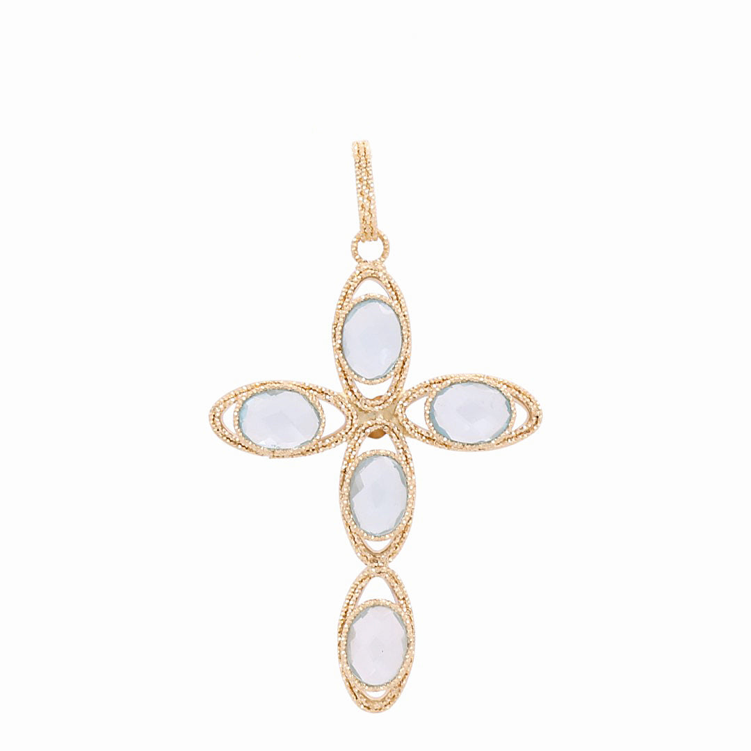 14K Yellow Gold Diamond Cut with Light Blue Stones Pendant