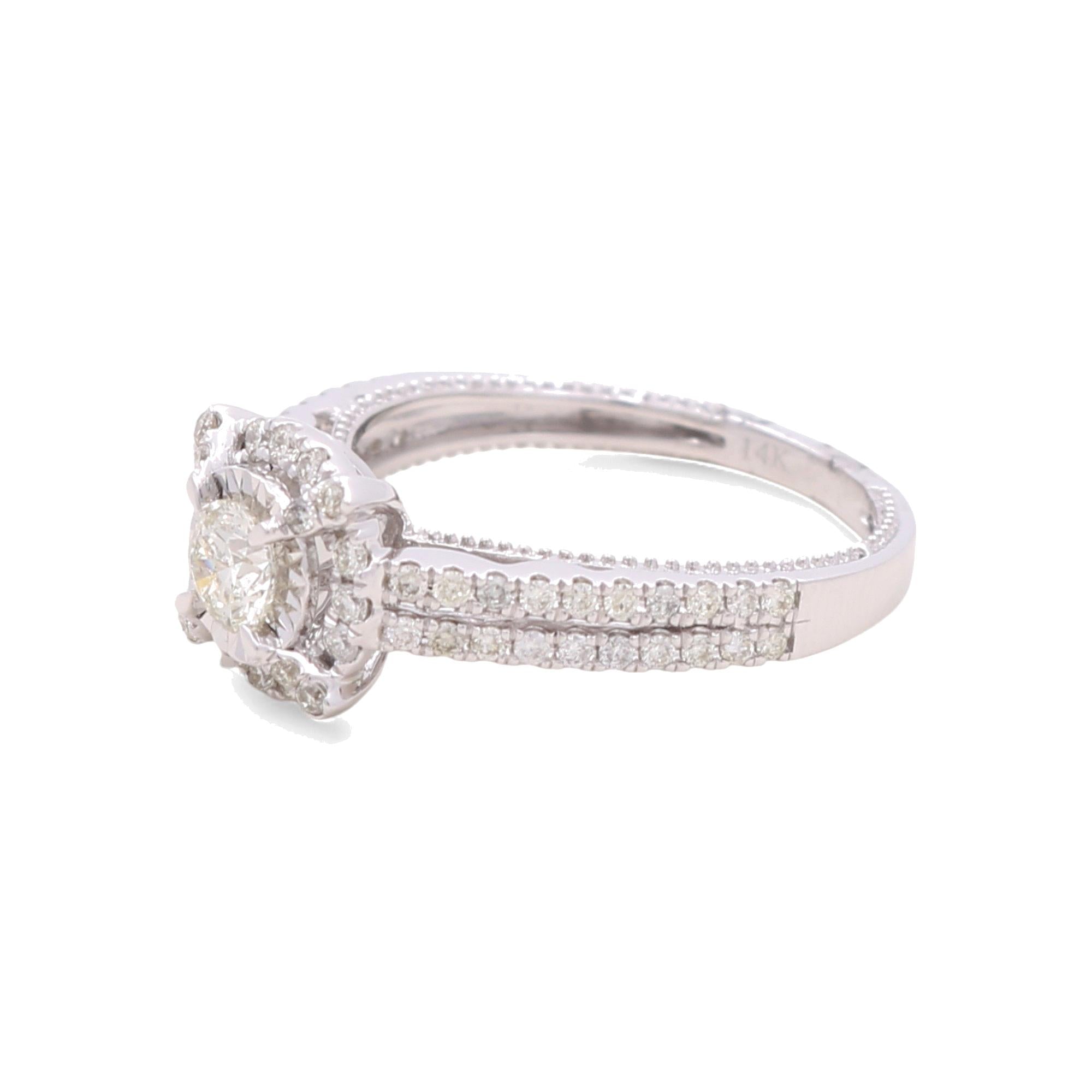 14K White Gold Round Diamond Engagement Ring with 1.00Tw Round Diamonds