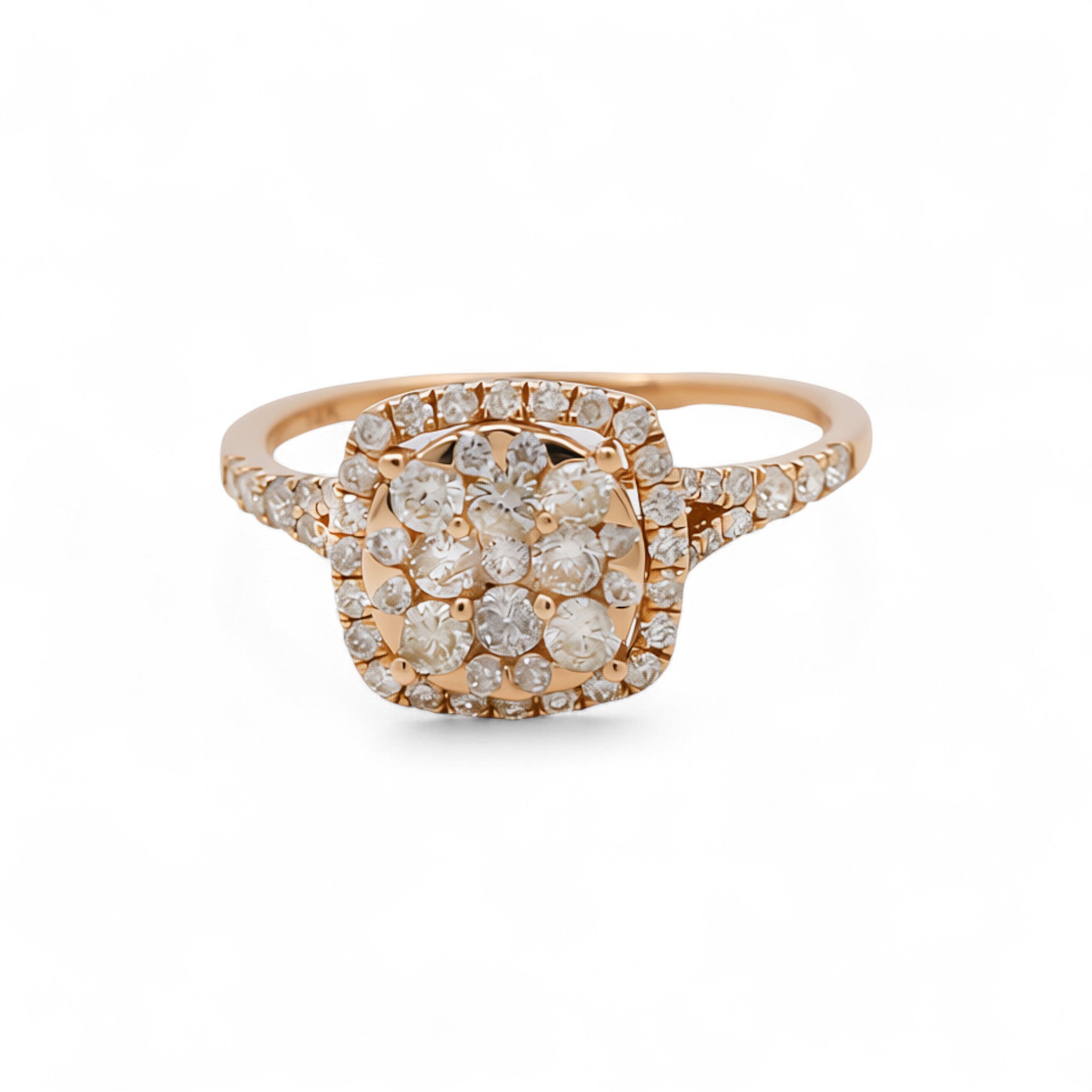 14K yellow Gold Square Diamond Engagement Ring with 1.25Tw Round Diamonds