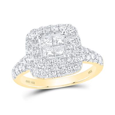 14K Yellow Gold Square Diamond Engagement Ring with 1.50Tw Round Diamonds