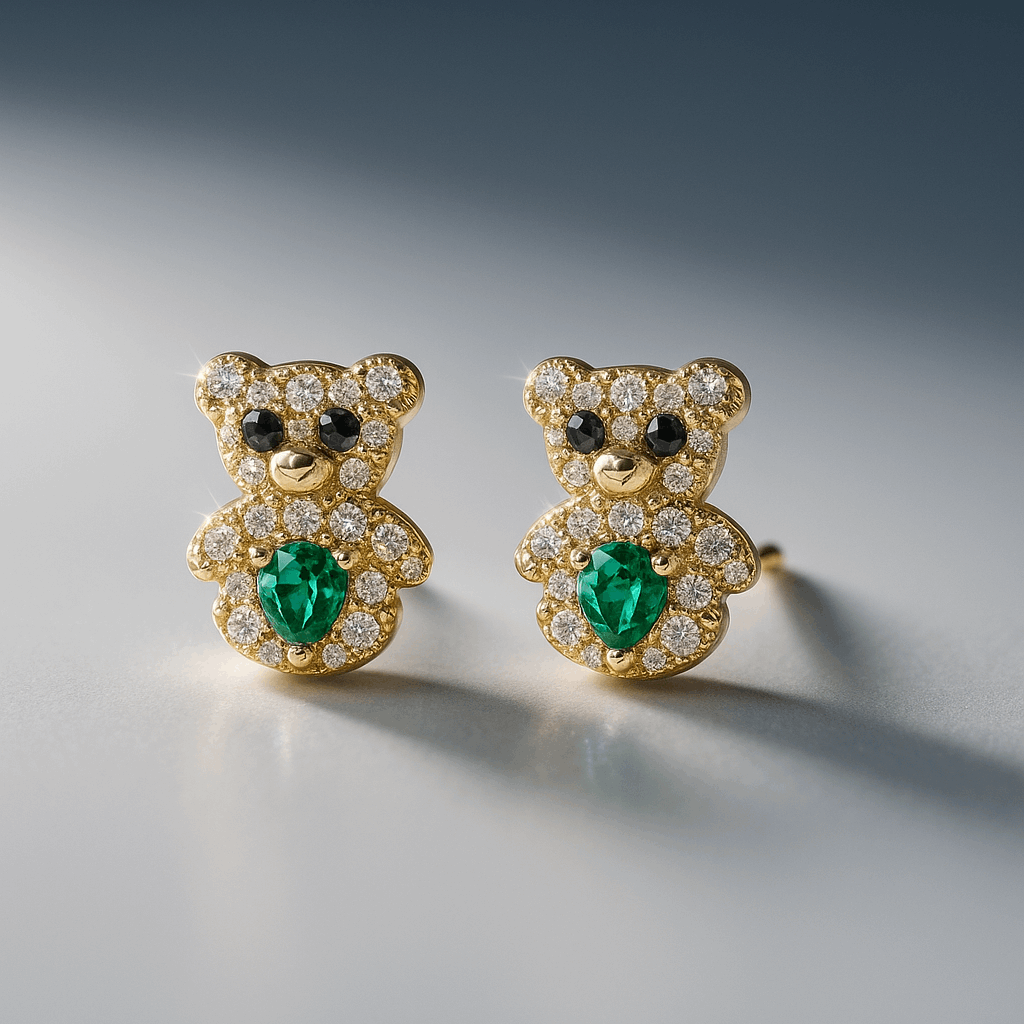 Embrace natural elegance with these enchanting 14K Yellow Gold Bear Green Earrings, a harmonious blend of whimsy and sophisticated luxury. Skillfully crafted in lustrous 14-karat yellow gold, these delightful bear earrings feature vibrant green accents that bring freshness and vitality to your jewelry collection. The lush green tones create a beautiful, earthy contrast against the warm glow of yellow gold, offering a refreshing aesthetic that feels both modern and timeless. Perfect for those who appreciate nature-inspired designs with refined craftsmanship, these earrings deliver distinctive style without compromising on elegance. The playful bear design combined with the calming appeal of green creates a versatile piece suitable for any occasion. Meticulously constructed with superior attention to detail, these earrings showcase the quality and prestige you expect from fine jewelry. Celebrate your unique personality with a piece that combines artistic charm, enduring beauty, and the exceptional craftsmanship that defines luxury jewelry.