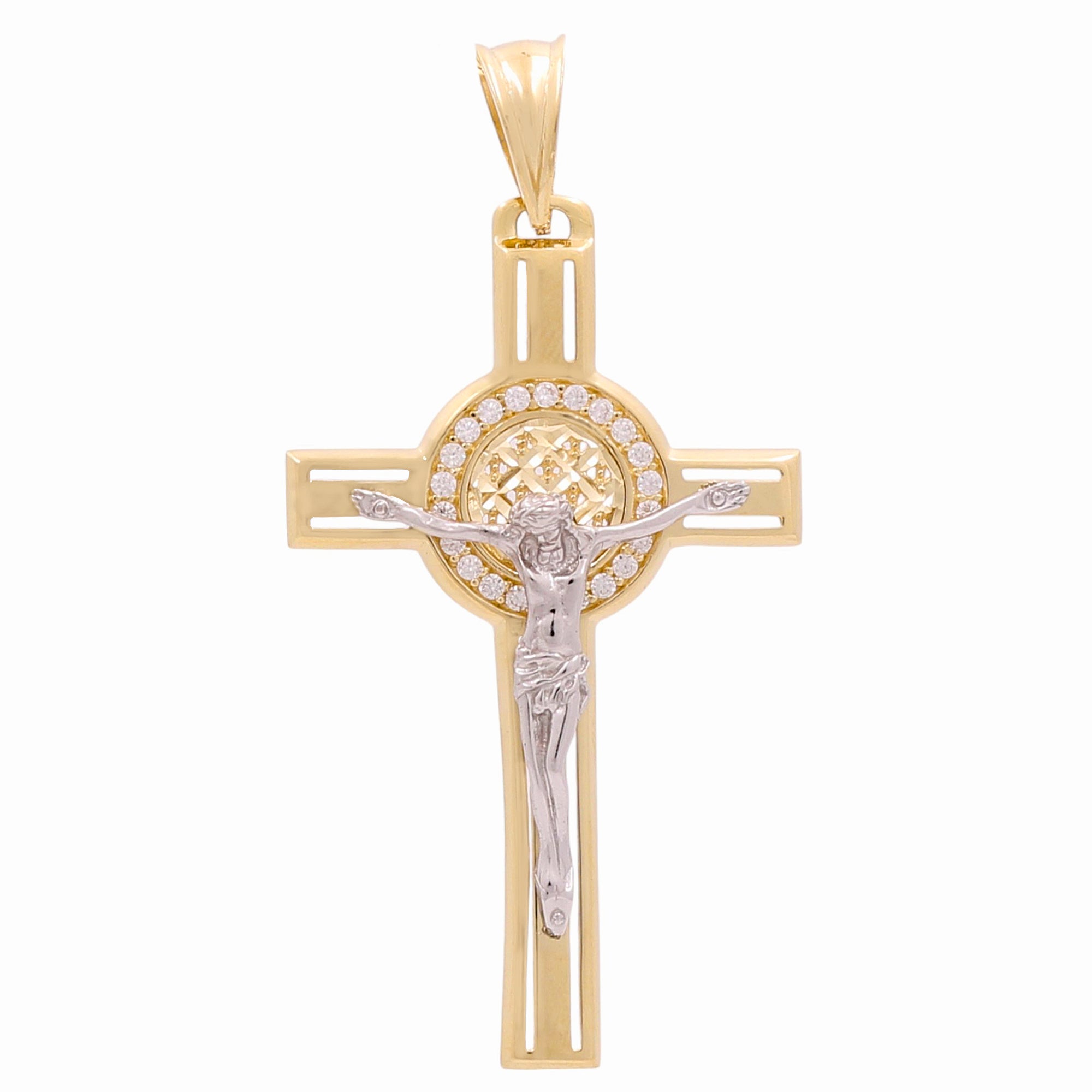 14K Two Tone White/Yellow Gold Crucifix Unisex Pendant