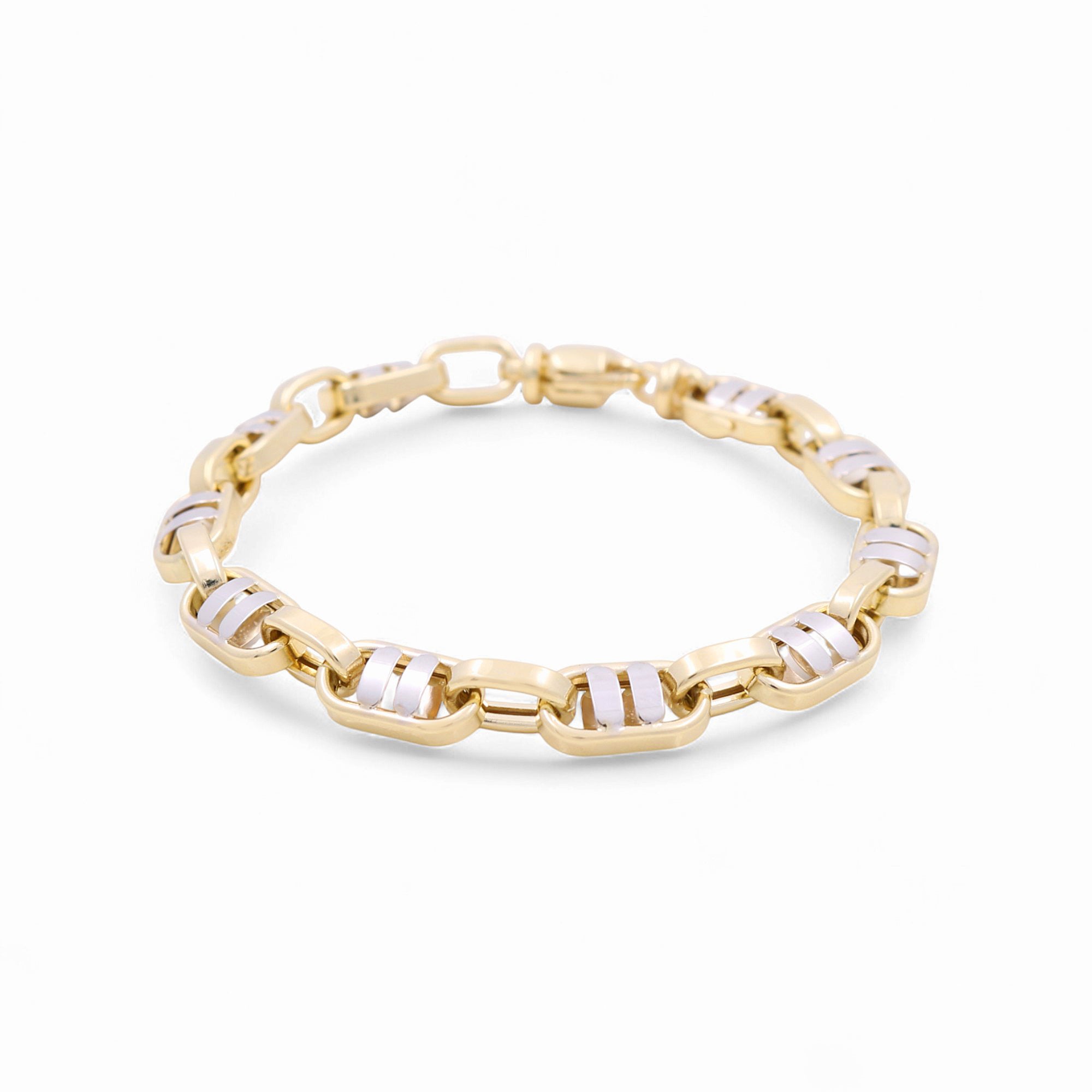 14K Two Tone White/Yellow Gold Fancy Link Bracelet