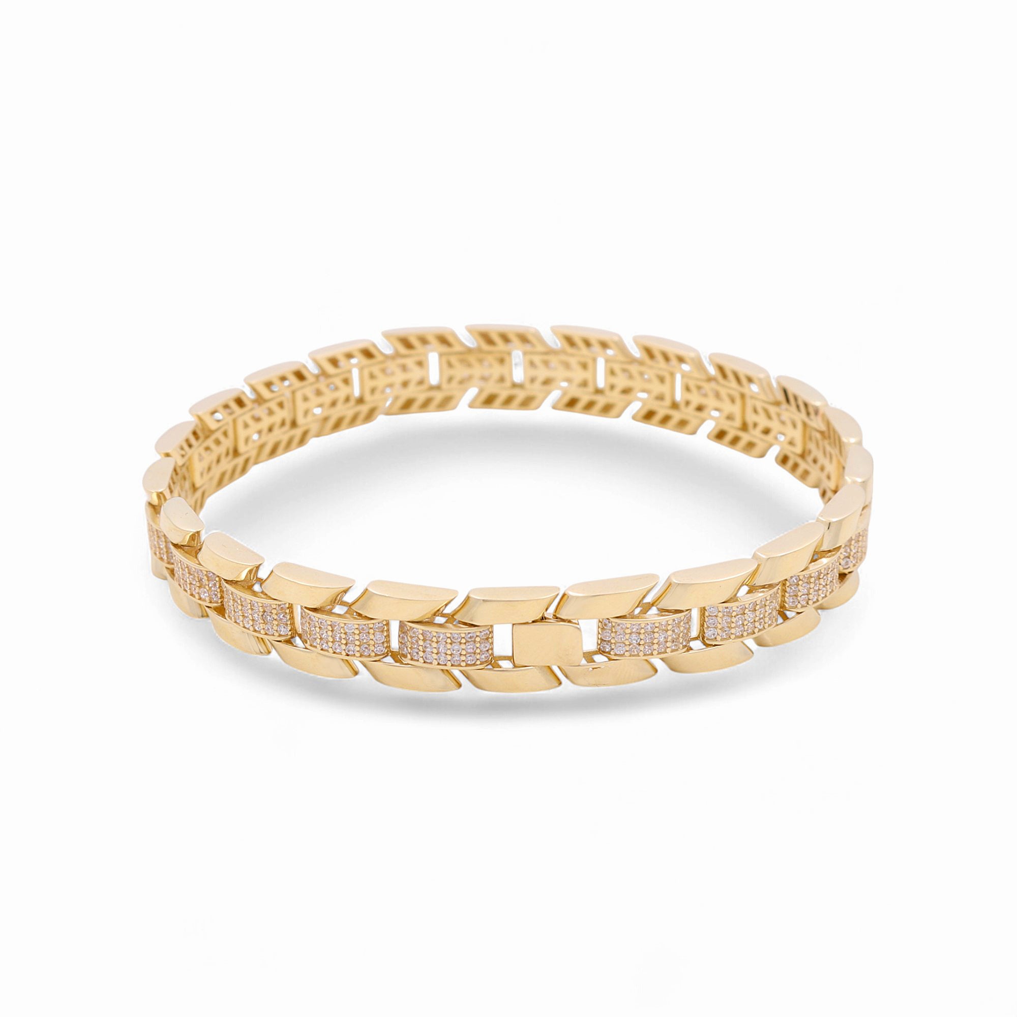 14K Yellow Gold Diamond Cut Fancy Link Bracelet
