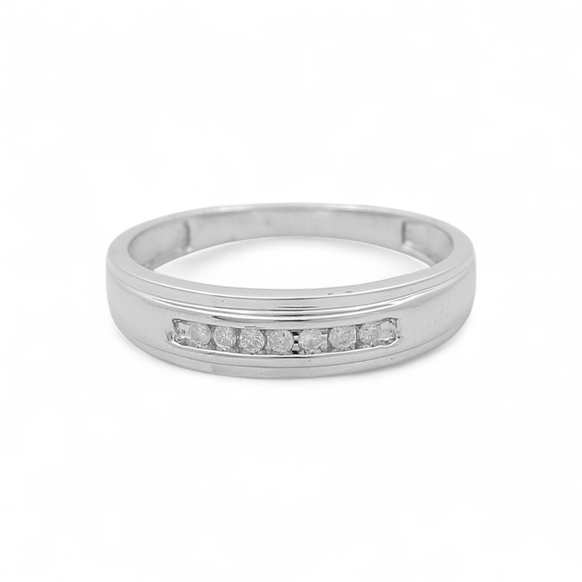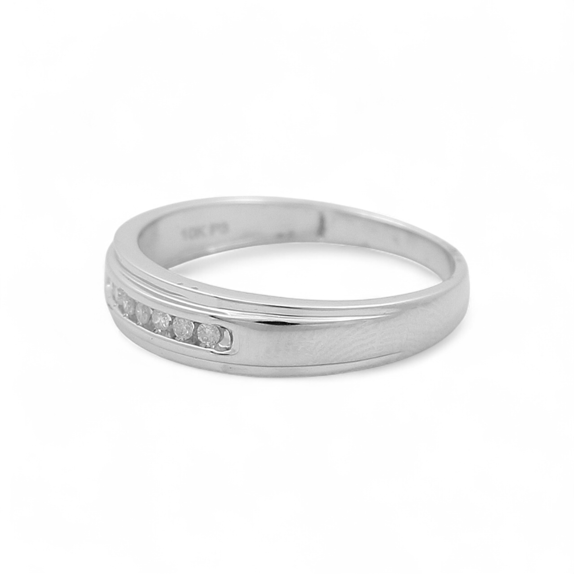 10K White Gold Wedding Band with 0.08Tw Round Diamonds