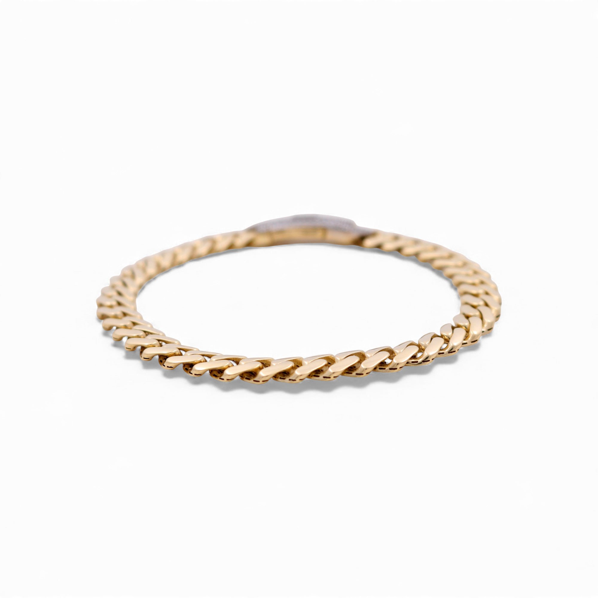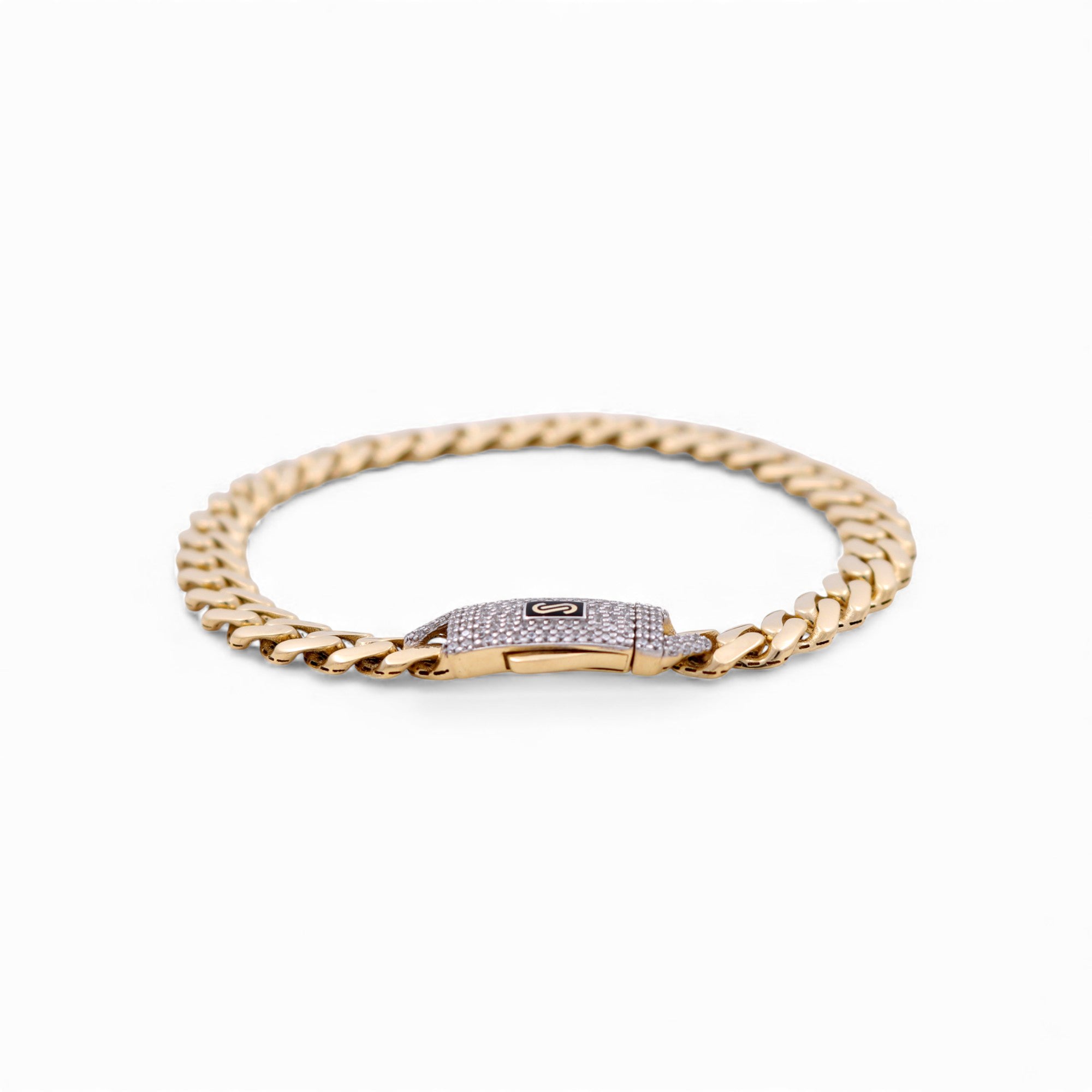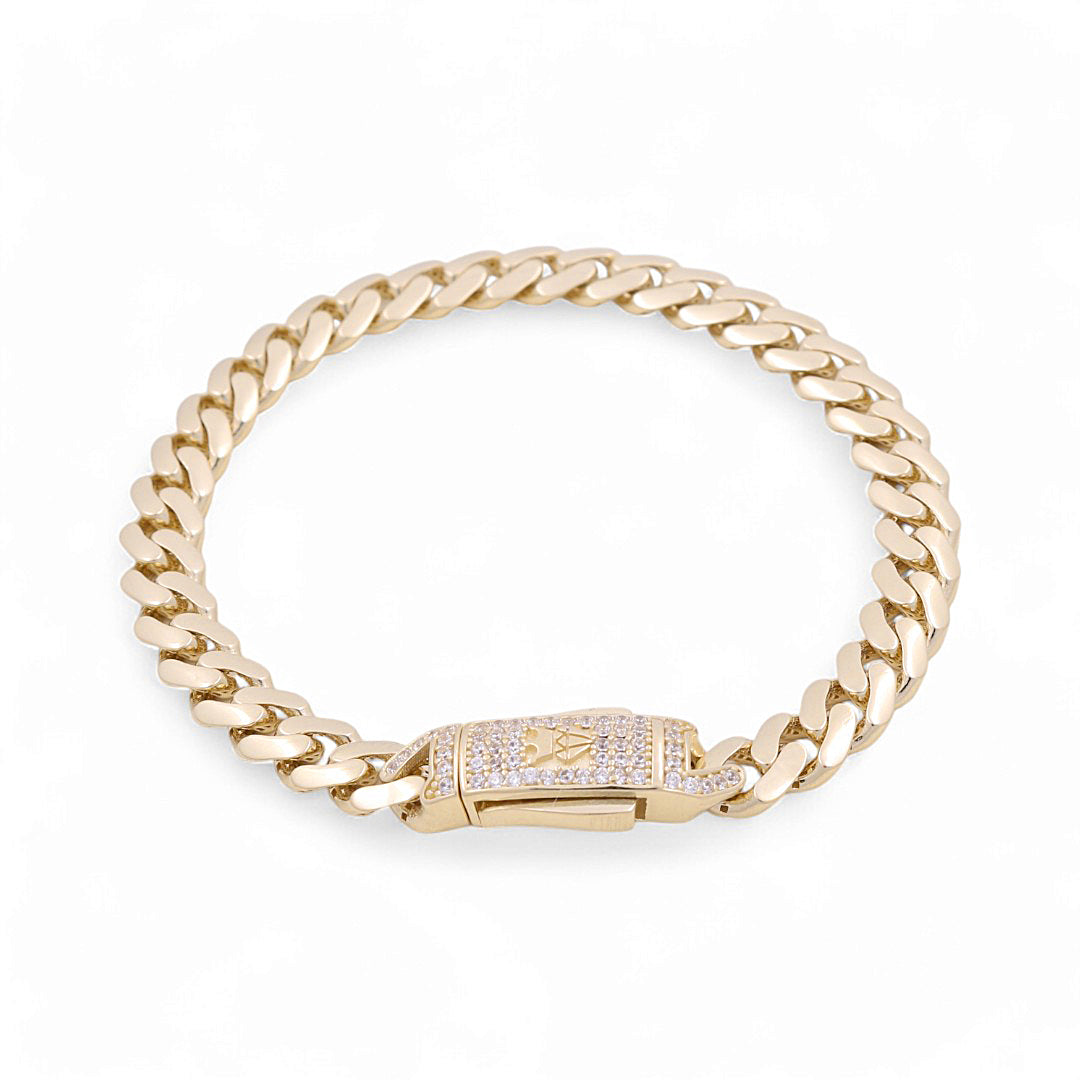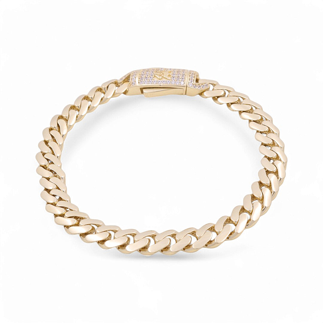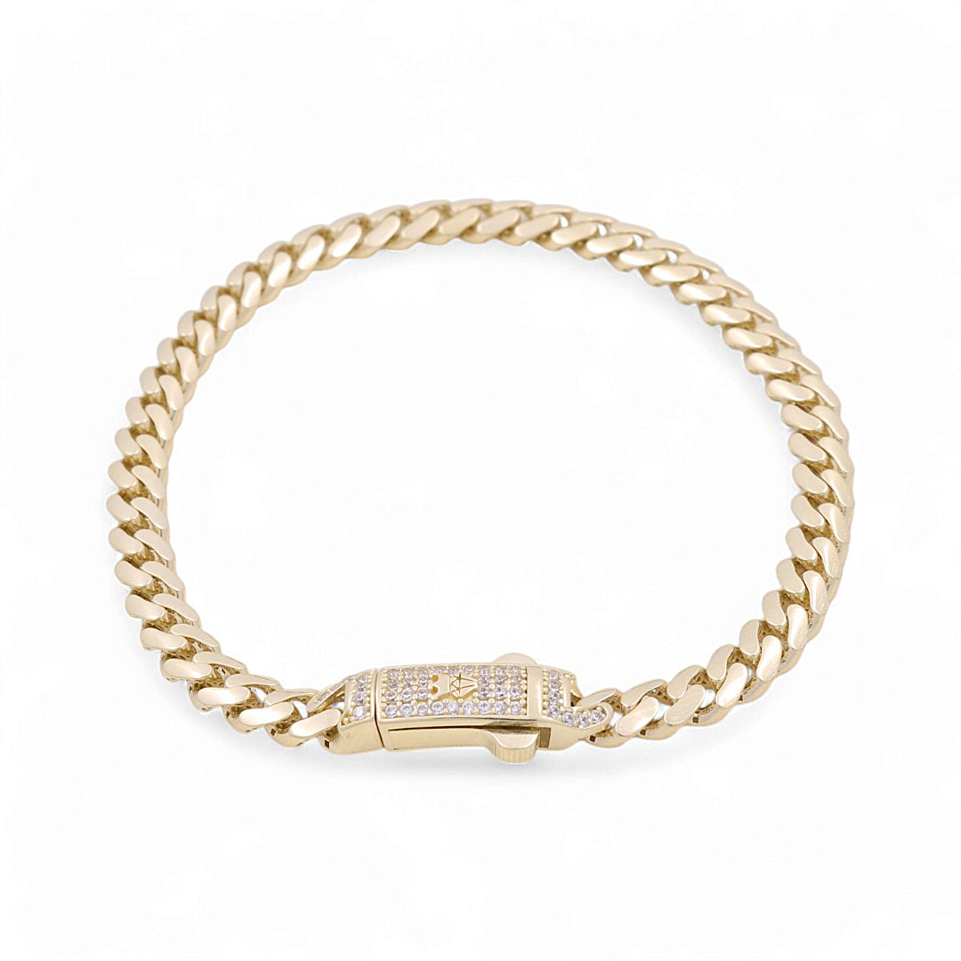 14K Yellow Gold Cuban Link Cz Clasp Women's Bracelet