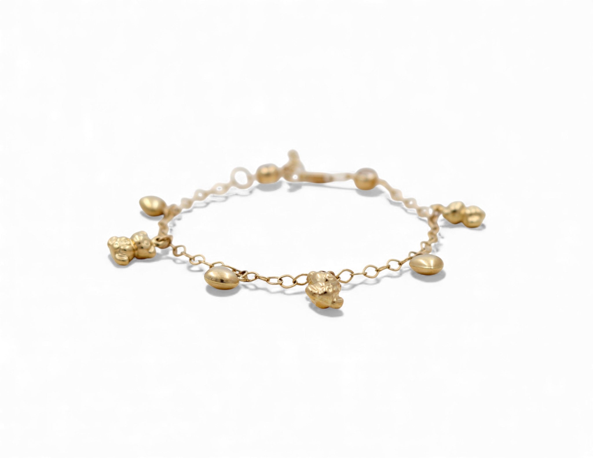 Create a bracelet that's uniquely yours with this versatile 14K yellow gold charms bracelet, a sophisticated foundation for building your personal jewelry narrative. The expertly crafted base bracelet provides the perfect stage for displaying meaningful charms that reflect your passions, milestones, and cherished memories. Fashioned from genuine yellow gold, this piece radiates luxury and warmth, offering a timeless backdrop that allows your charm collection to shine. The secure construction and thoughtful design ensure your charms remain safely displayed while maintaining comfort throughout your day. Whether you're commemorating life's special moments, celebrating your interests, or gifting to someone you love, each charm you add becomes part of an evolving story told on your wrist. The flexibility to customize and personalize makes this bracelet a truly one-of-a-kind accessory that grows with you over time. Perfect for those who appreciate meaningful jewelry that goes beyond aesthetics, this bracelet transforms into a wearable scrapbook of your most treasured experiences and aspirations, making it an heirloom-quality piece destined to be cherished for generations.