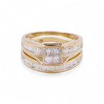 Yellow 10 Karat Square Diamond Bridal Set Size 7 With 1.50Tw Cushion And Round Diamonds