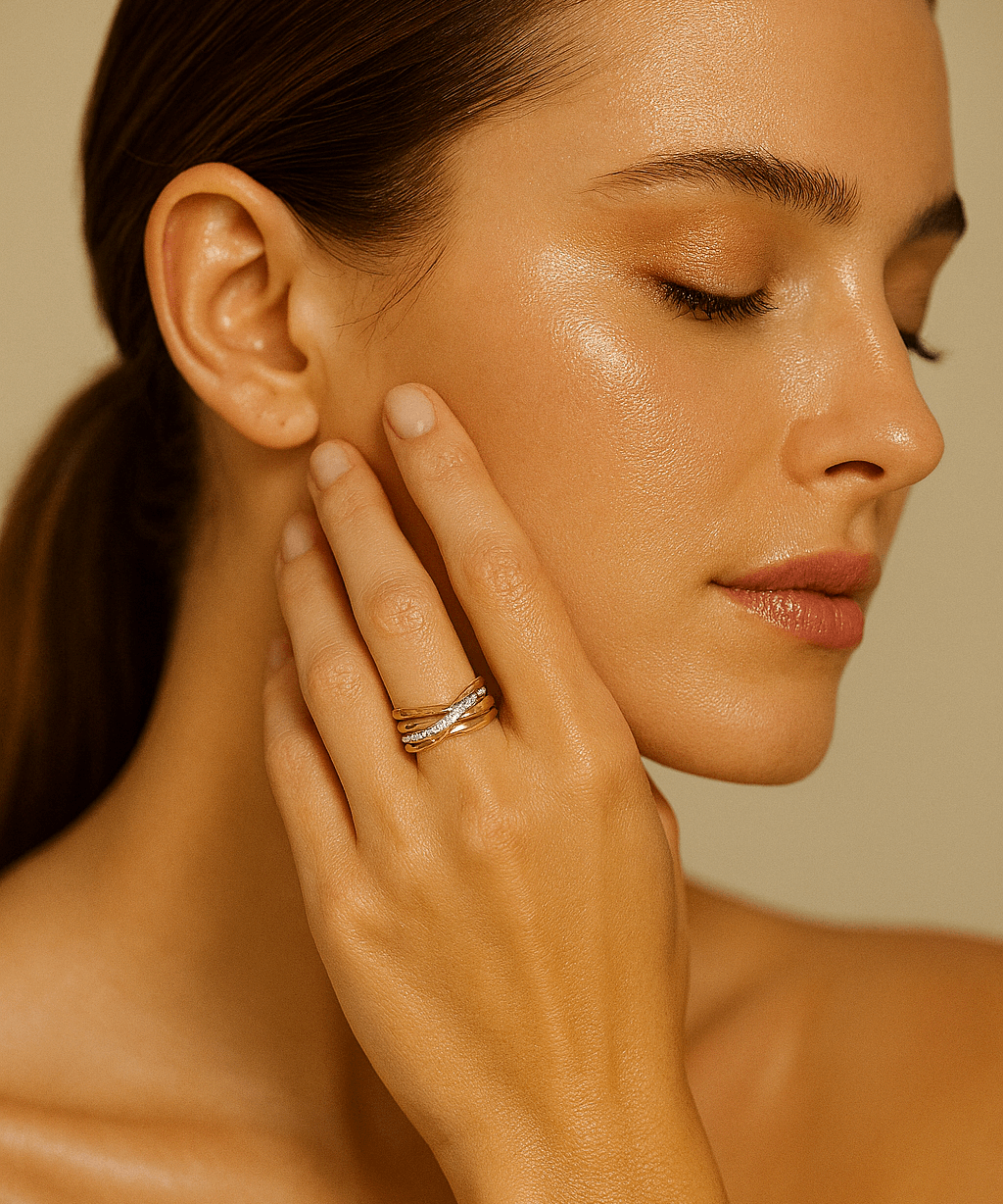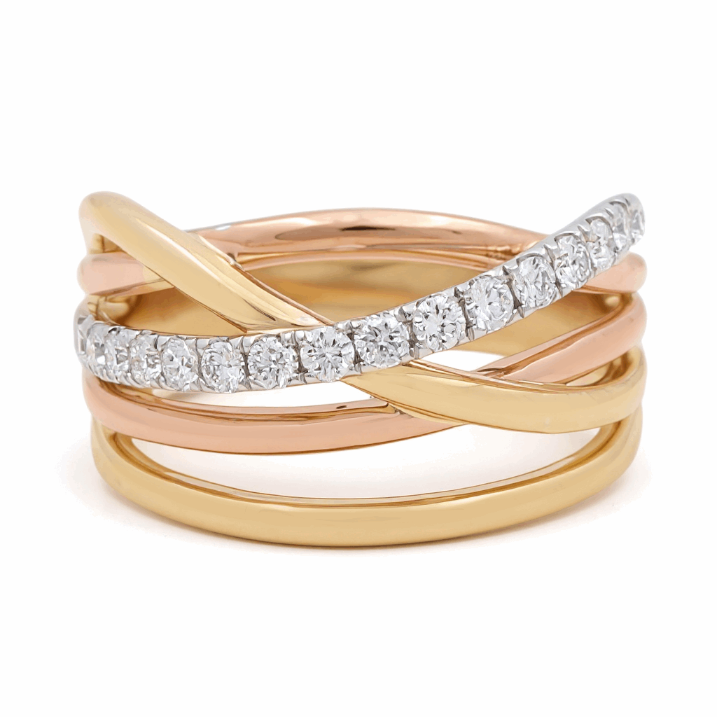 14K Tri Color Fashion Diamond Fashion Ring with 0.42Tw Round Diamonds