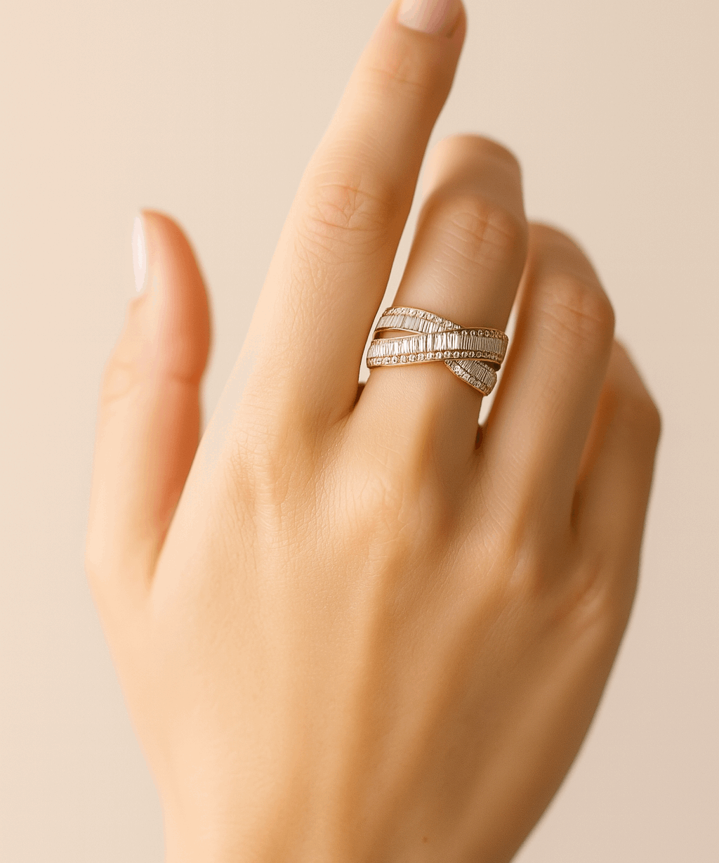 14K Yellow Gold Band Diamond Fashion Ring with 0.59Tw Baguette Diamonds and 0.44Tw Round Diamonds