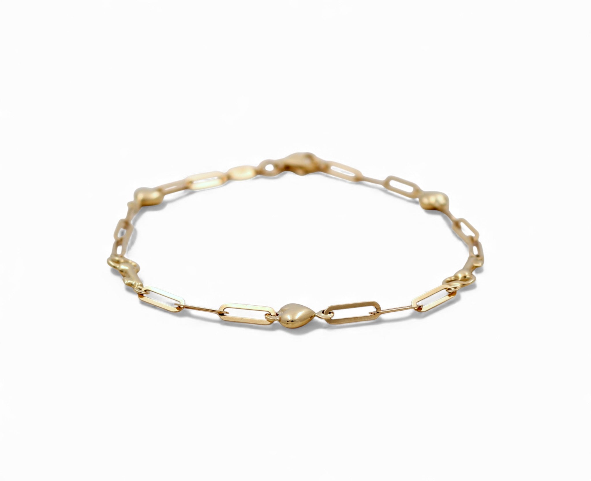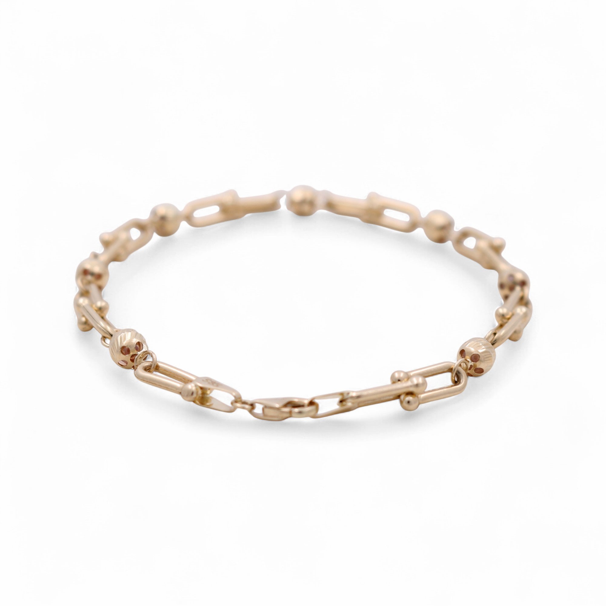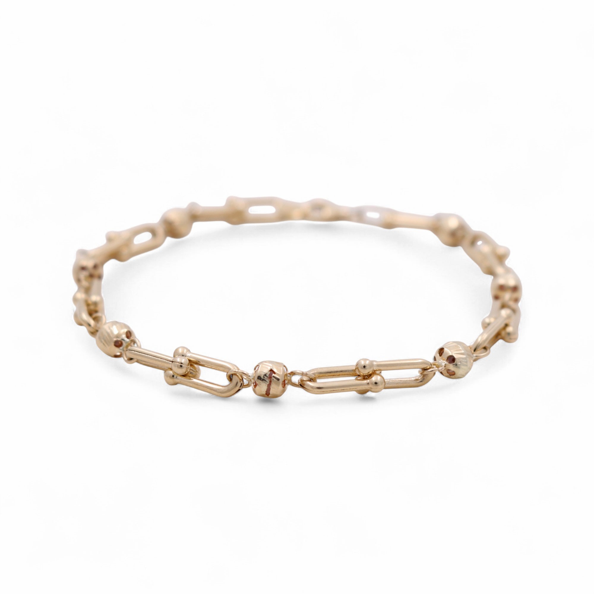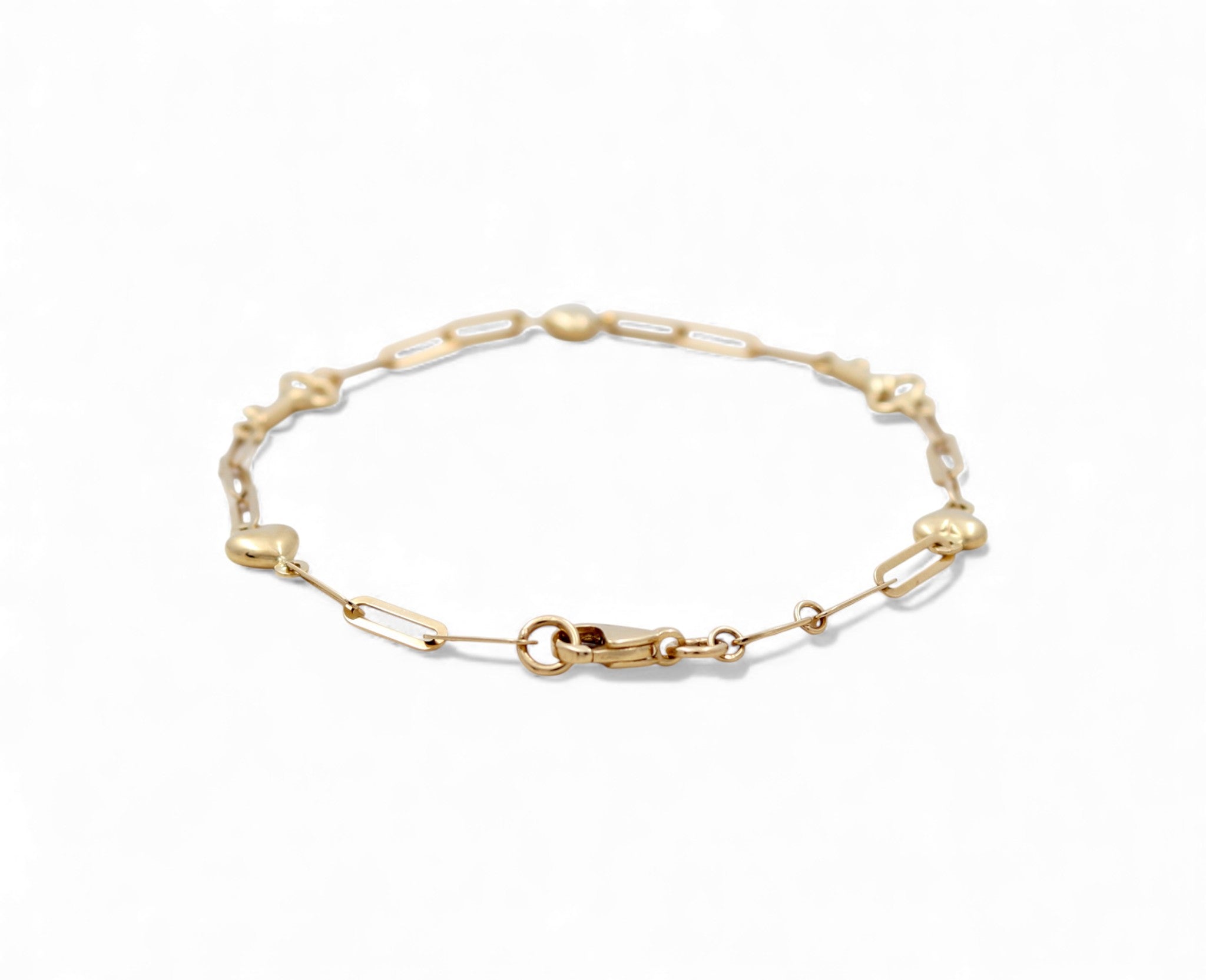 14K Yellow Gold Paper Clip and Beads Women's Bracelet