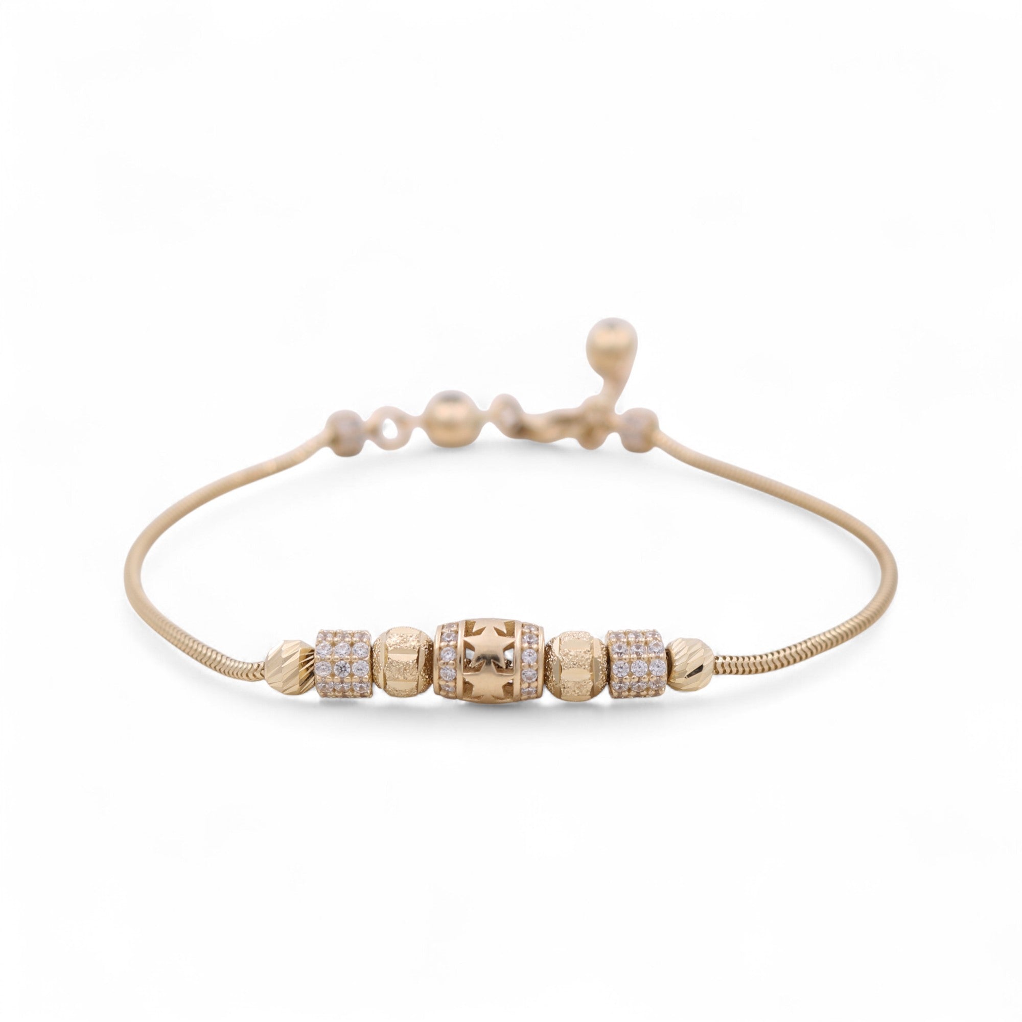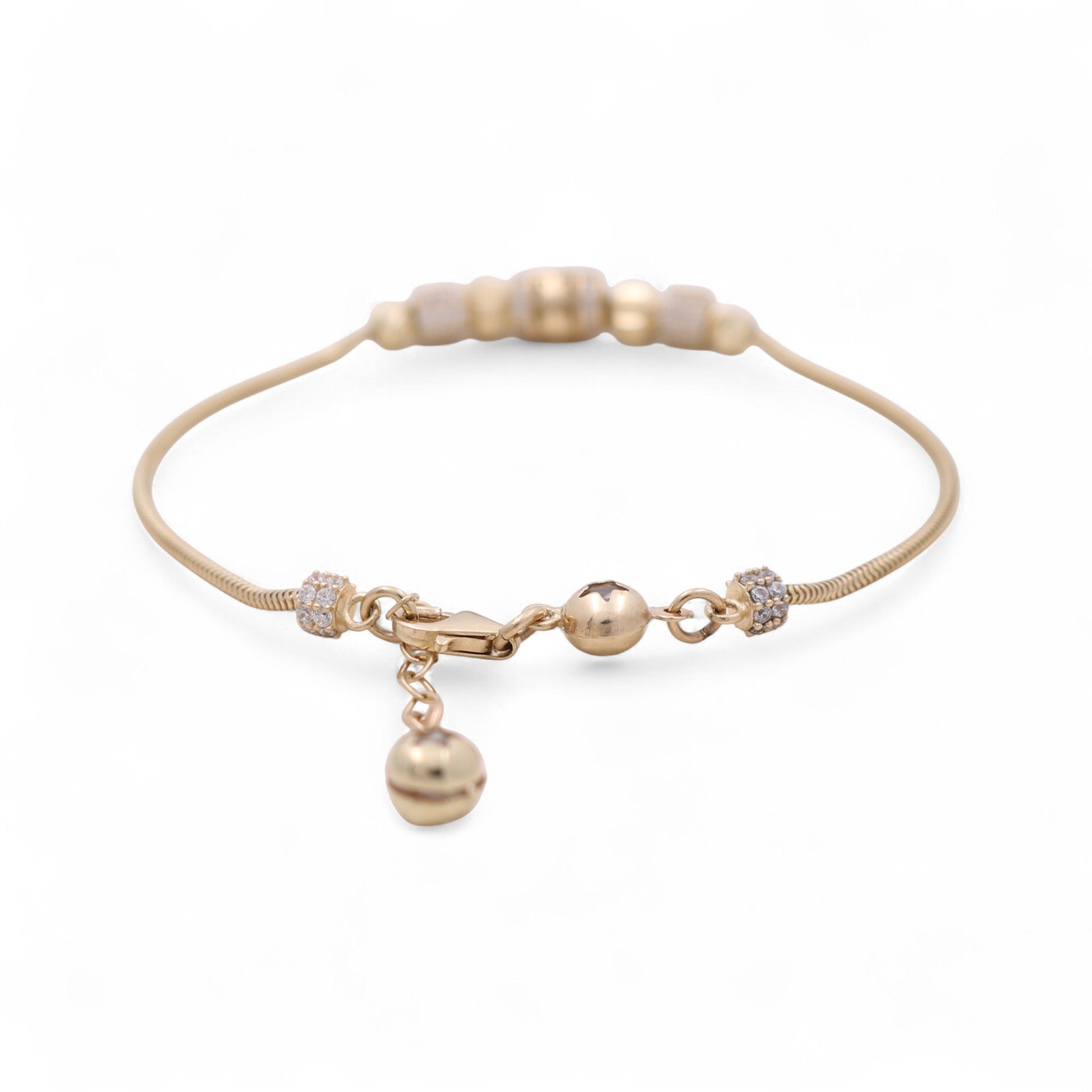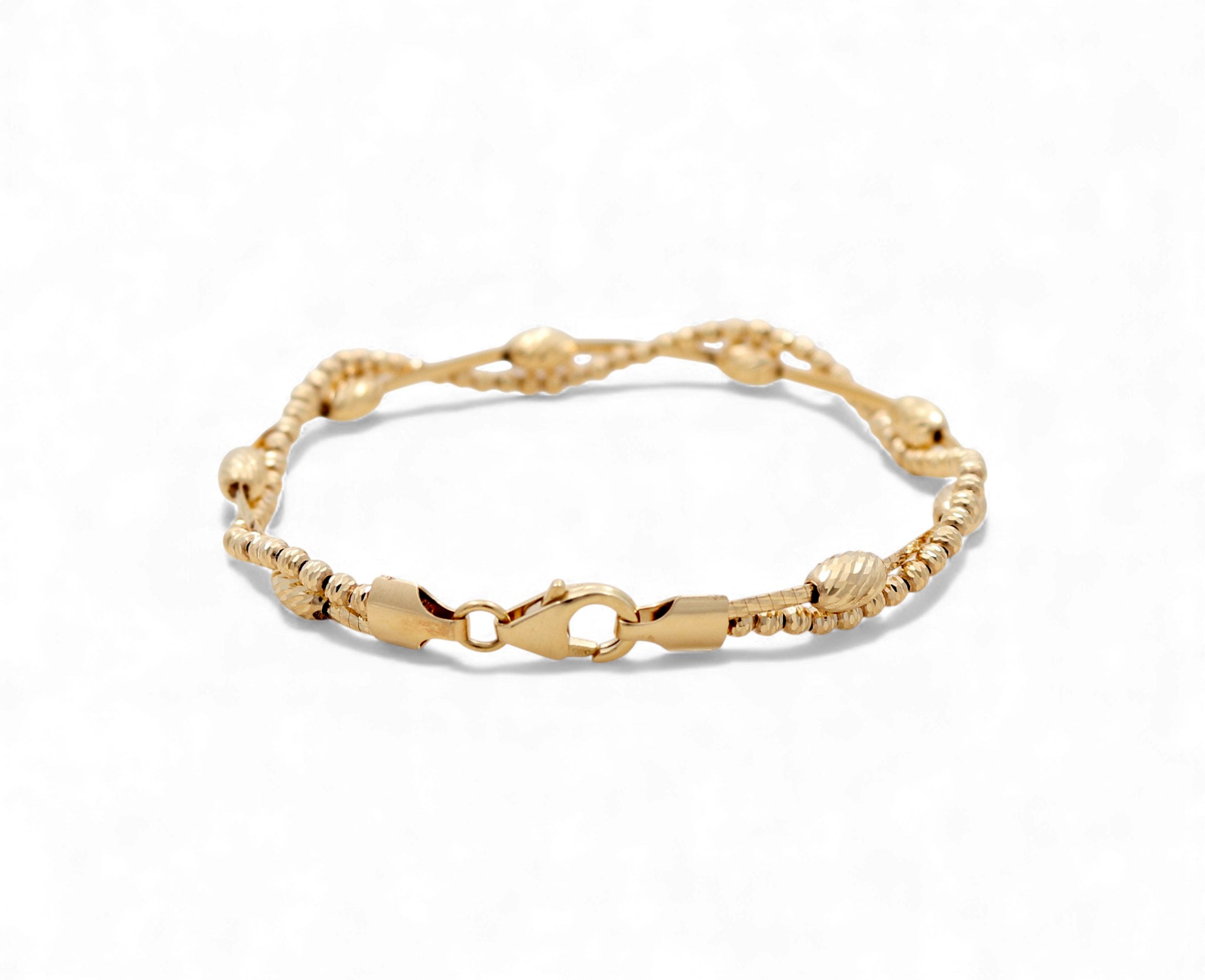 14K Yellow Gold Paper Clip and Beads Women's Bracelet