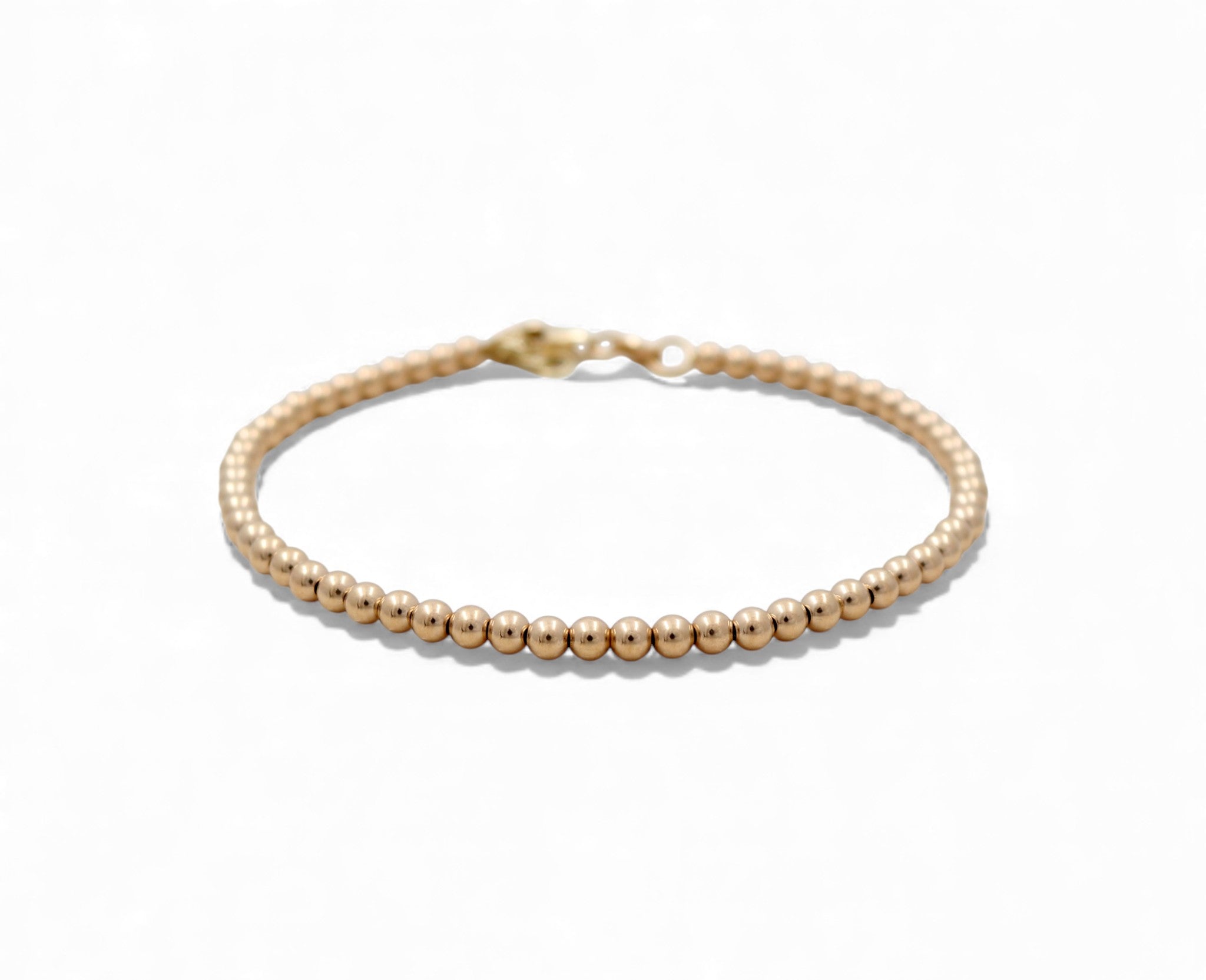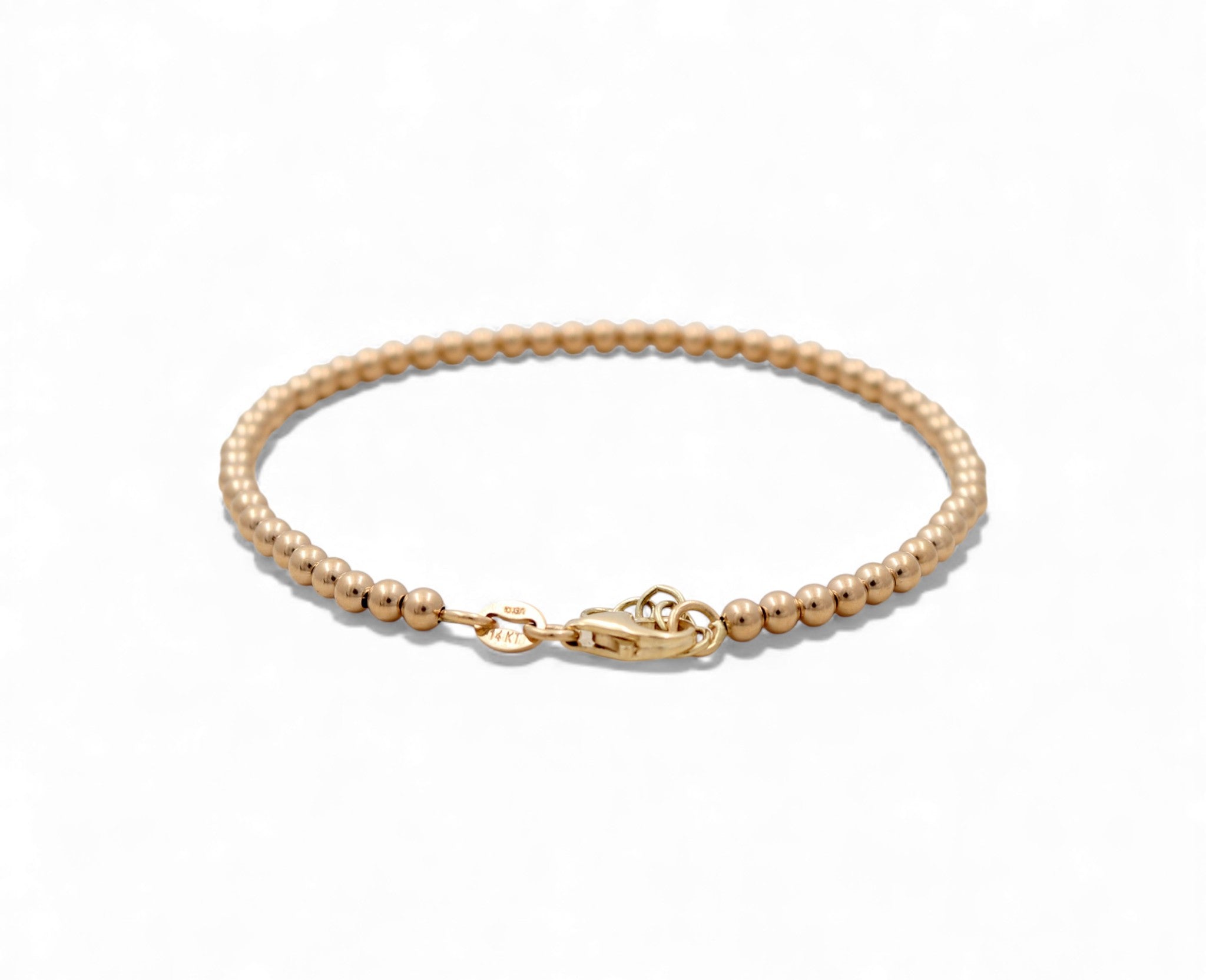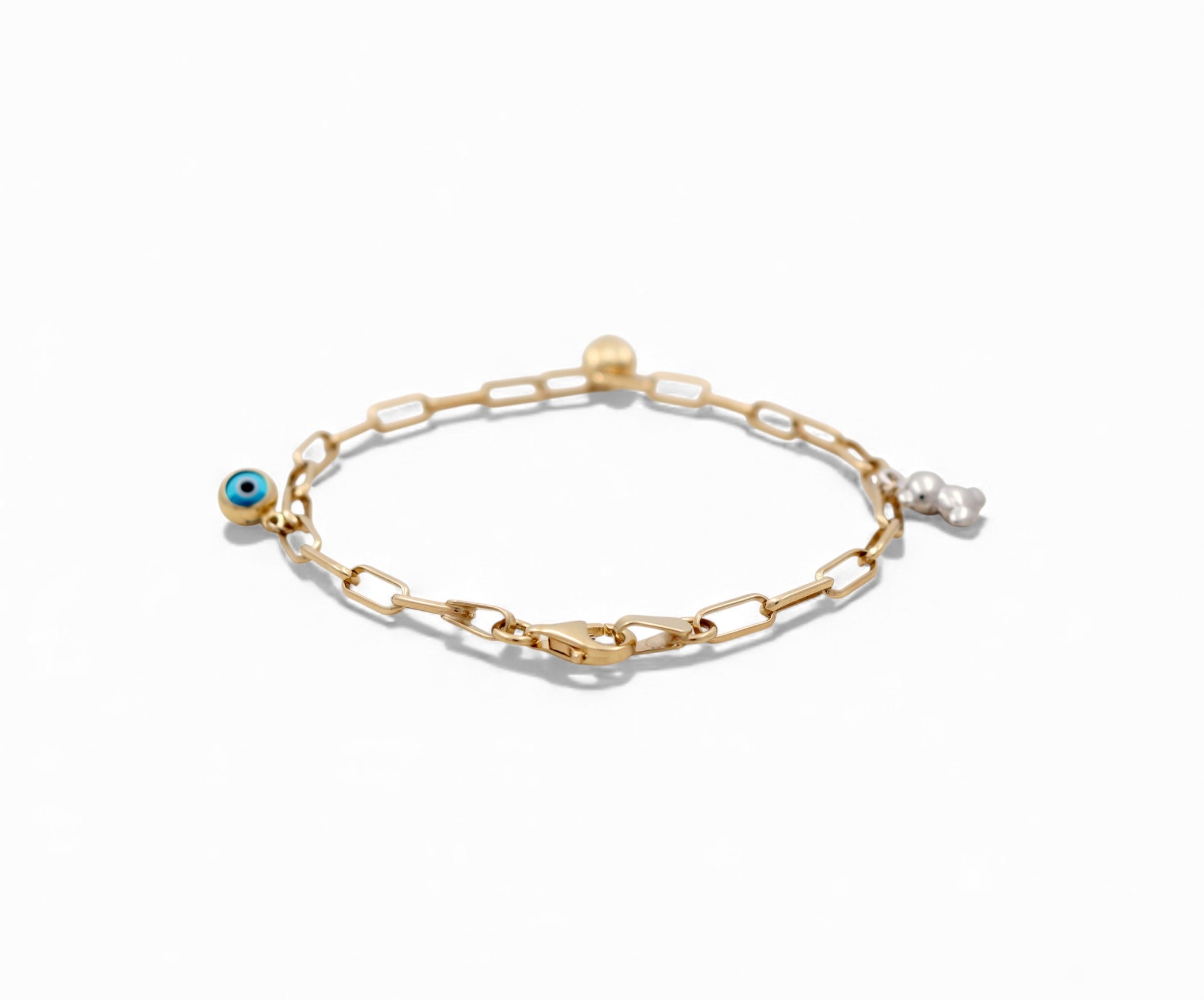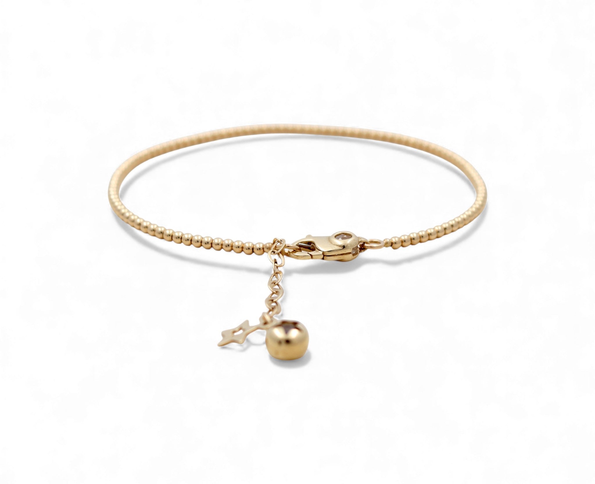 14K Yellow Gold Paper Clip and Beads Women's Bracelet