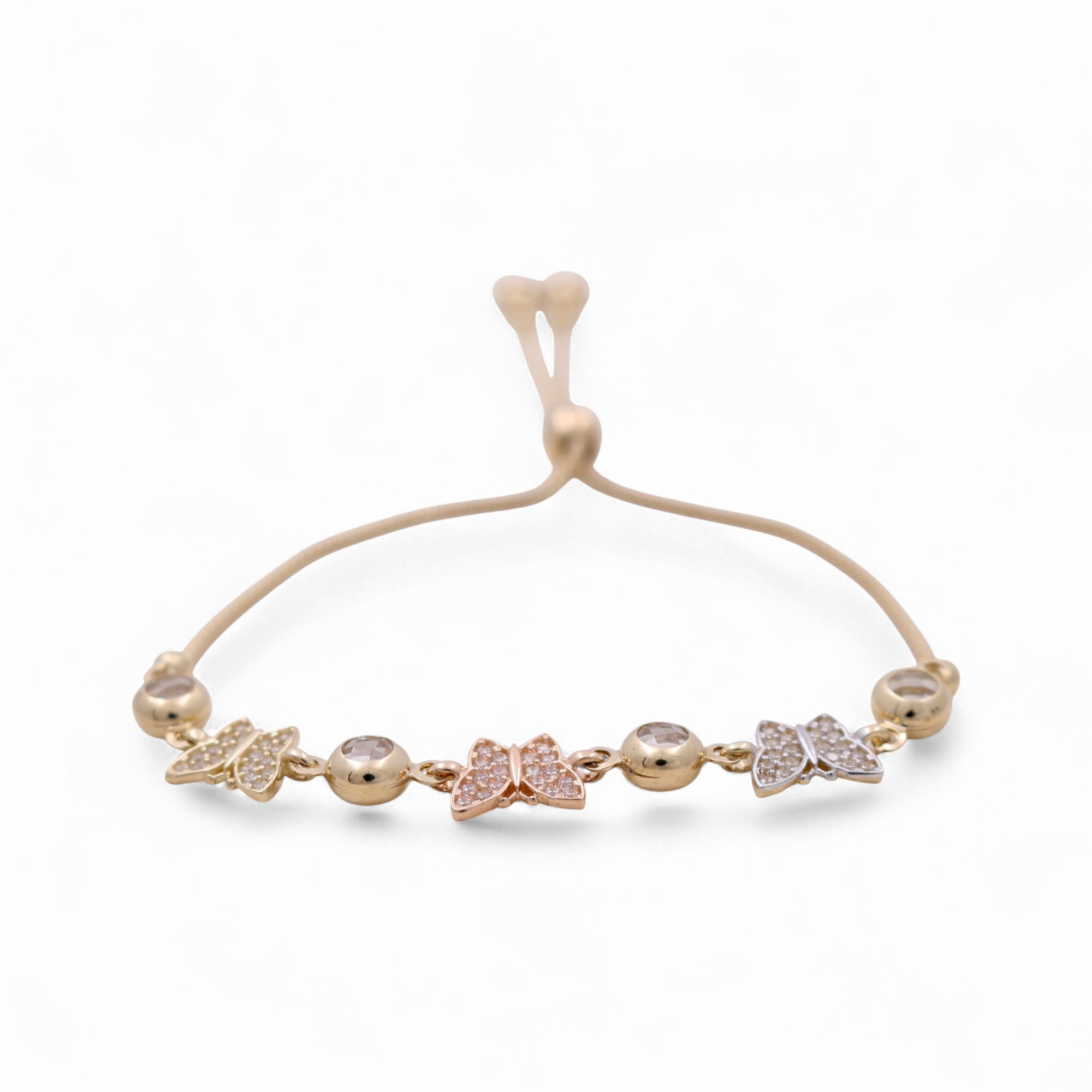 14K Two Tone White/Yellow Gold Adjustable Butterflies Women's Bracelet