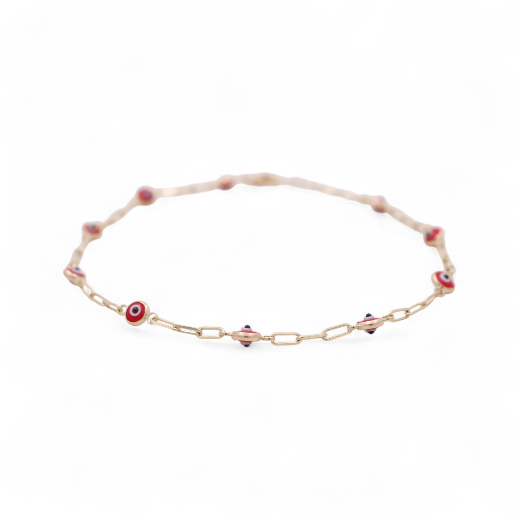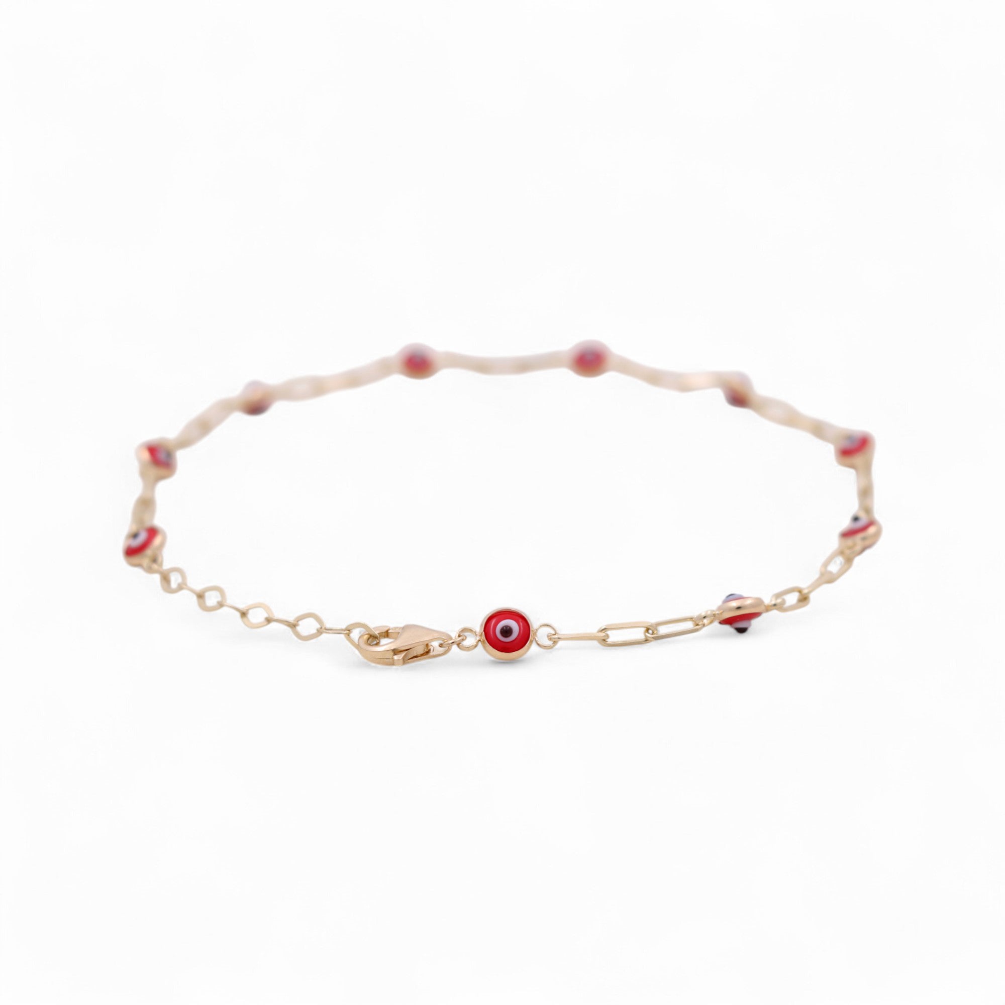 14K Yellow Gold Paper Clip with Red Eye Women's Bracelet