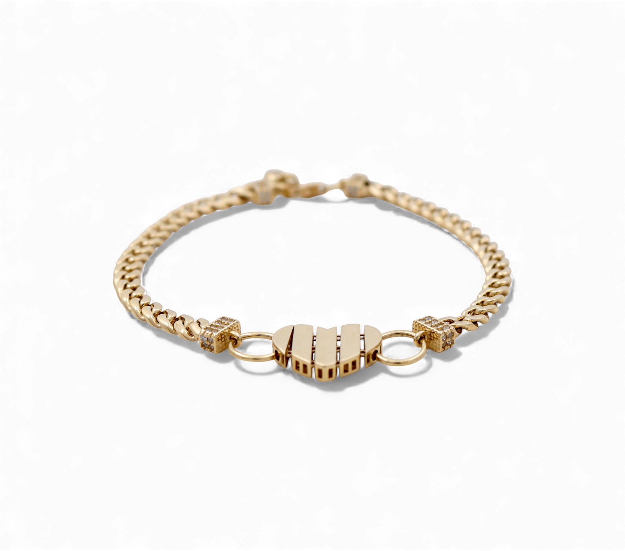 14K Yellow Gold Cuban Link with Heart Women's Bracelet