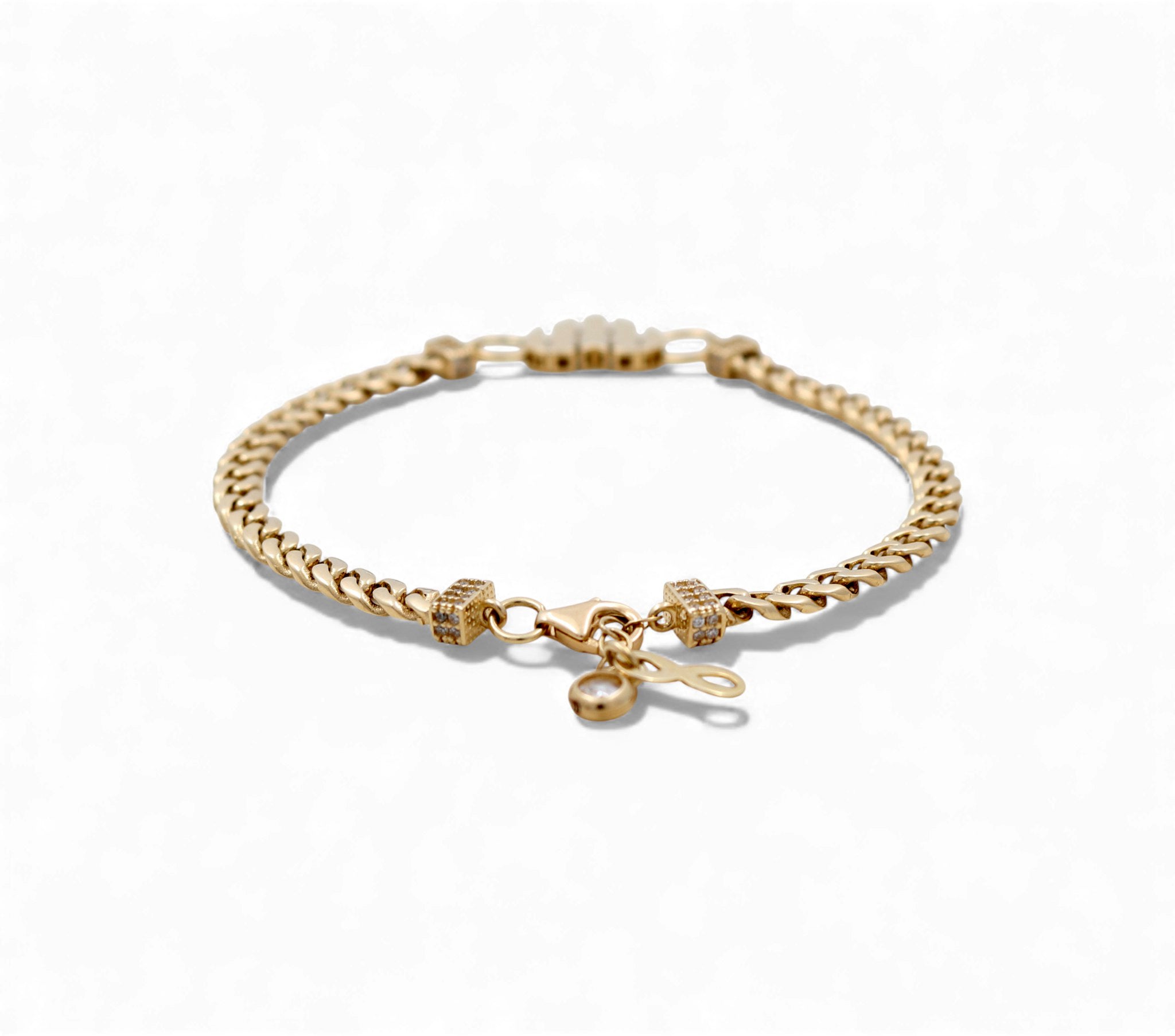 14K Yellow Gold Cuban Link Cz Clasp Women's Bracelet