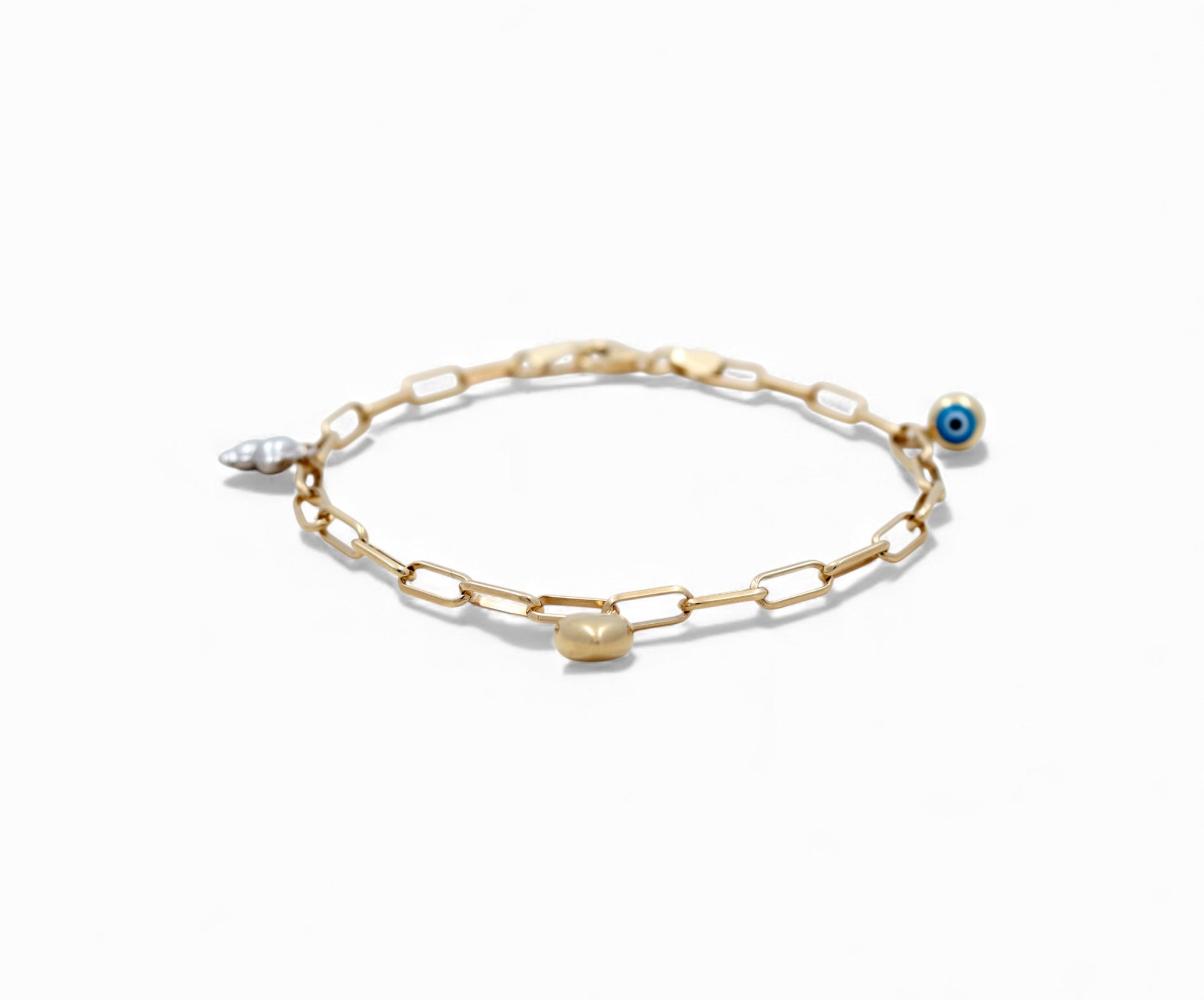 14K Yellow Gold Rolo with Charms Women's Bracelet