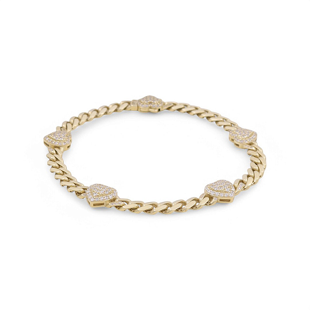 10K Yellow Gold Heart with Cz Women's Bracelet