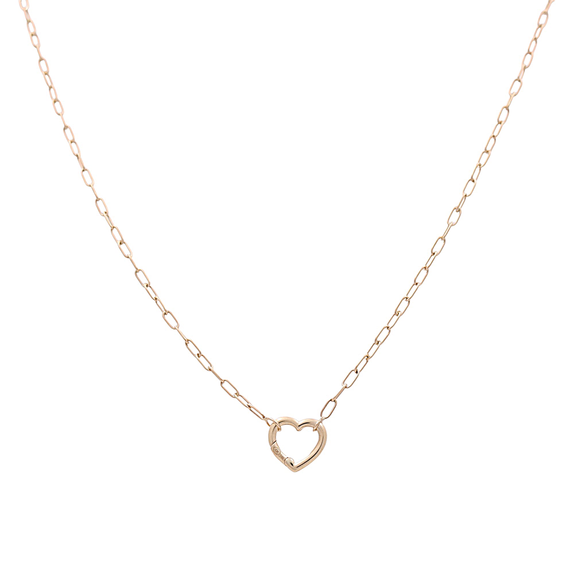 14K Yellow Gold Paper Clip with Heart Women's Necklace 17"