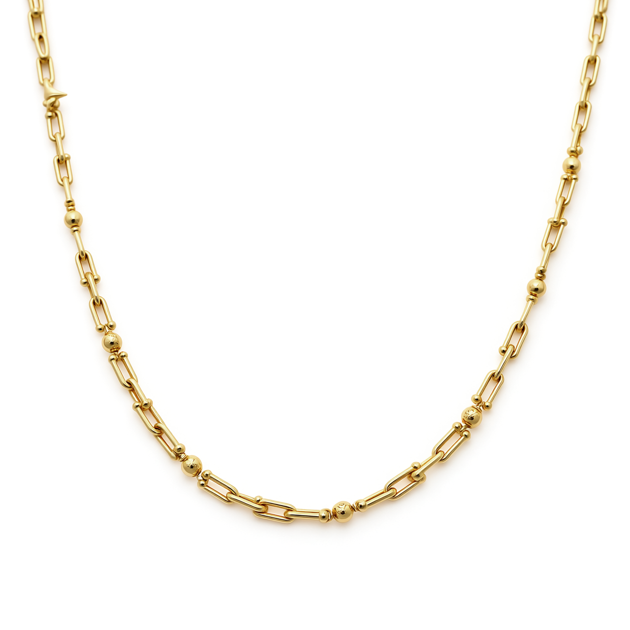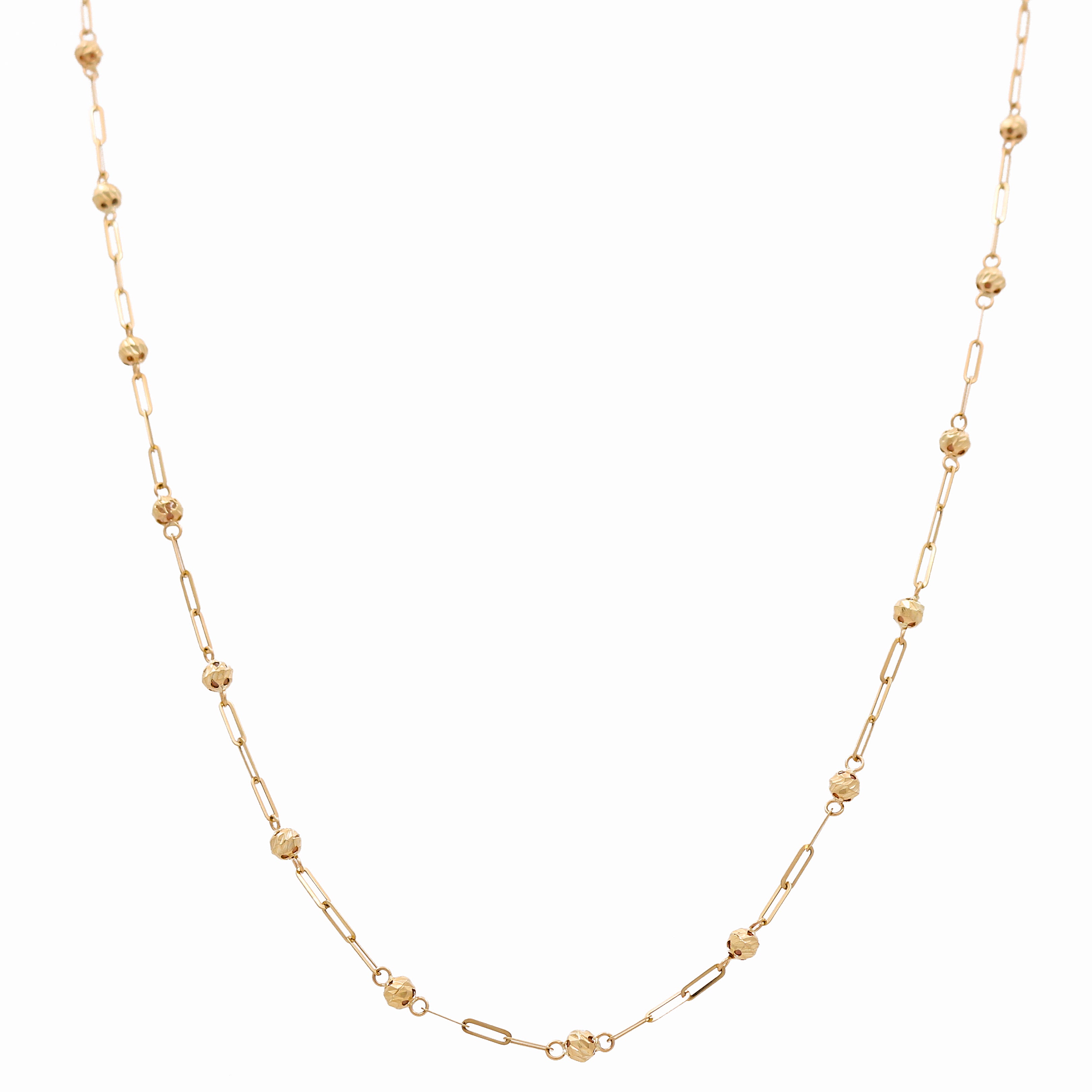 Yellow Gold 14K Paper Clip with Beads Necklace 18"