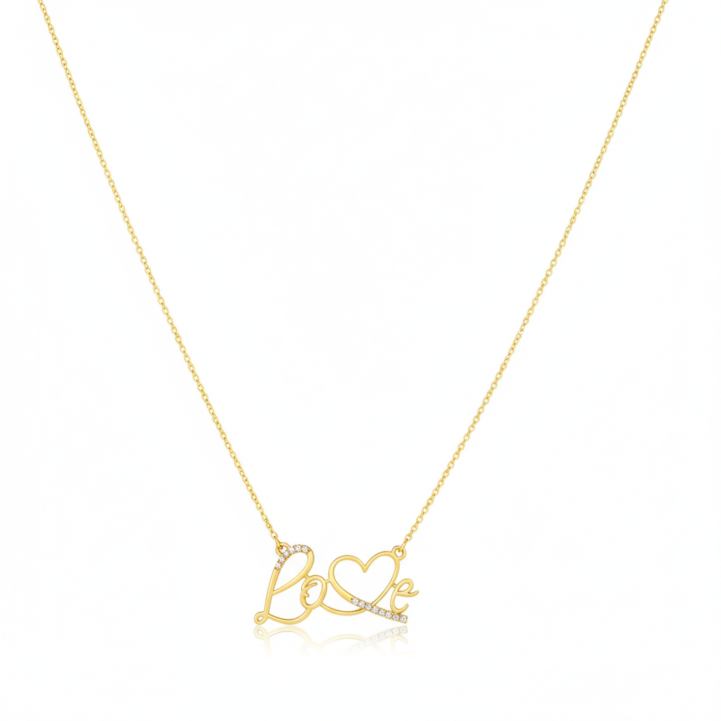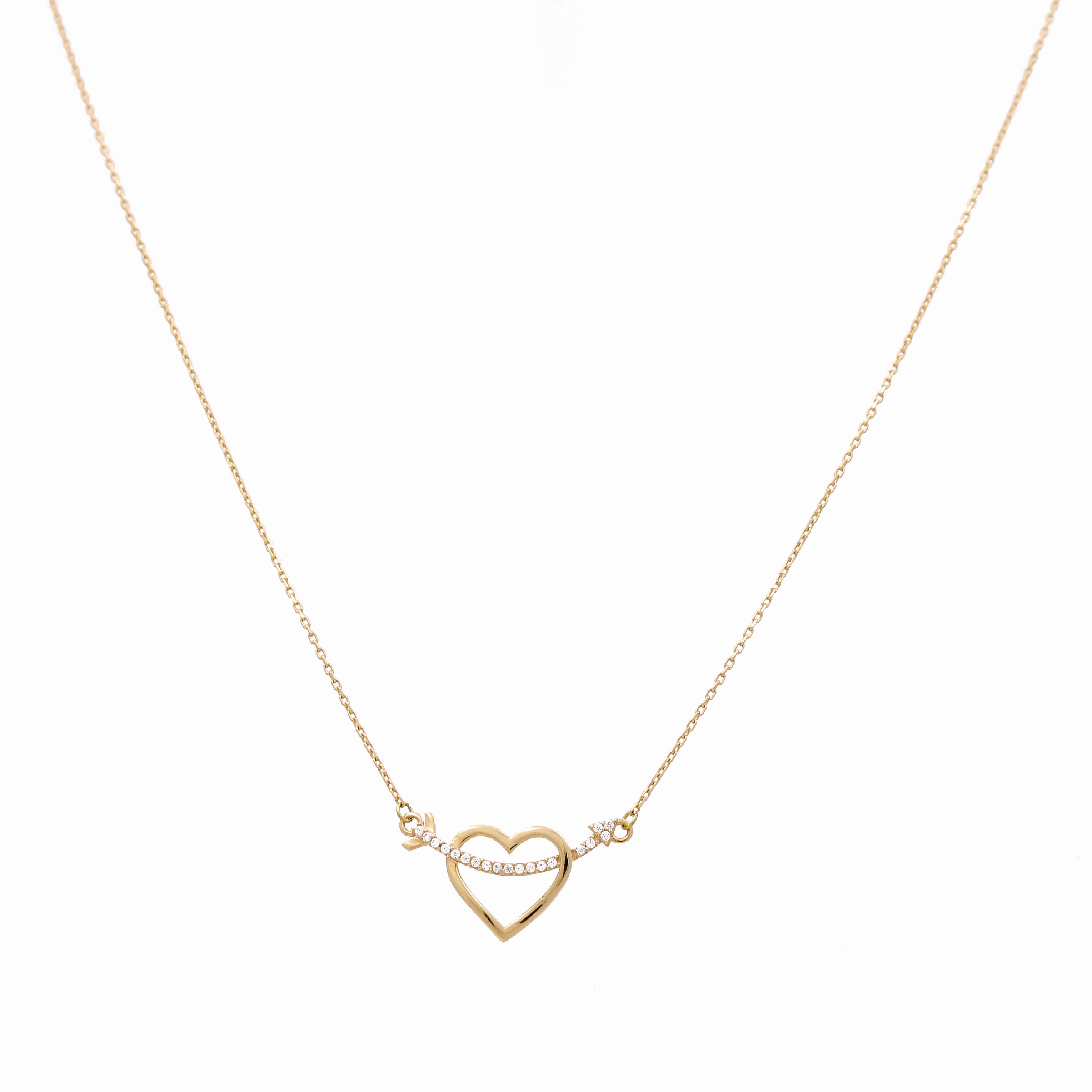 14K Yellow Gold Paper Clip With Heart Women's Necklace