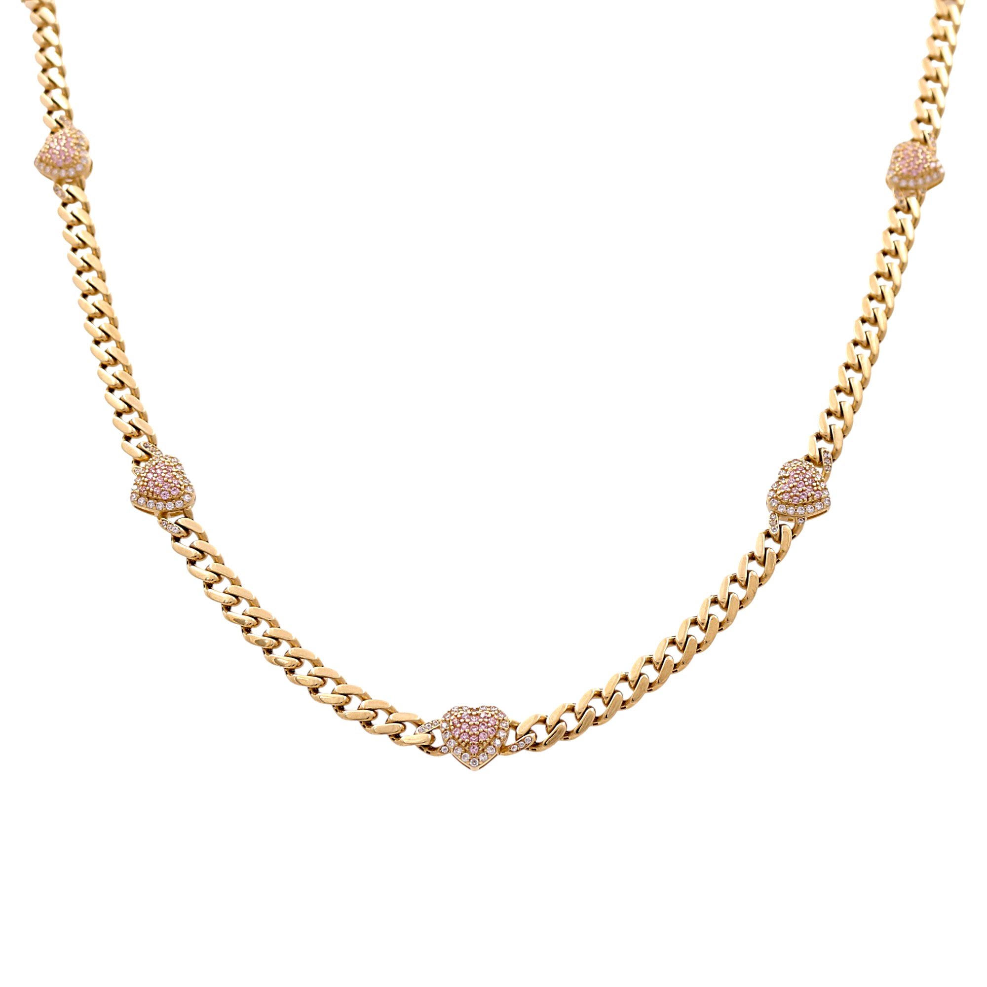10K Yellow Gold Cuban Link with Hearts Women's Necklace 18"