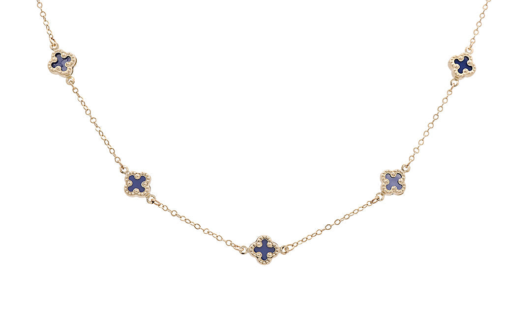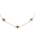 10K Yellow Gold Fashion 13 Blue Flowers Women's Necklace