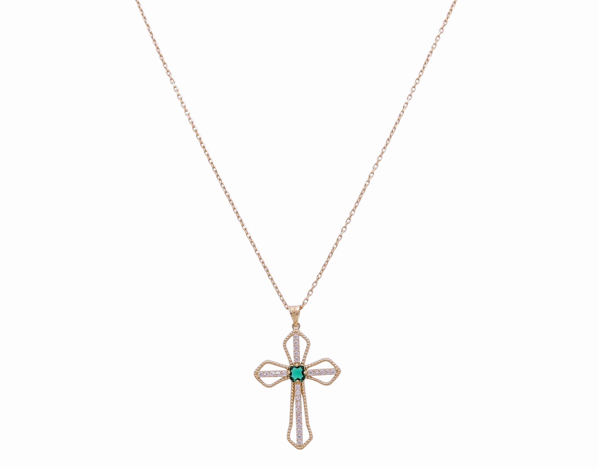 14K Yellow Gold Cross Necklaces with Onix Stone