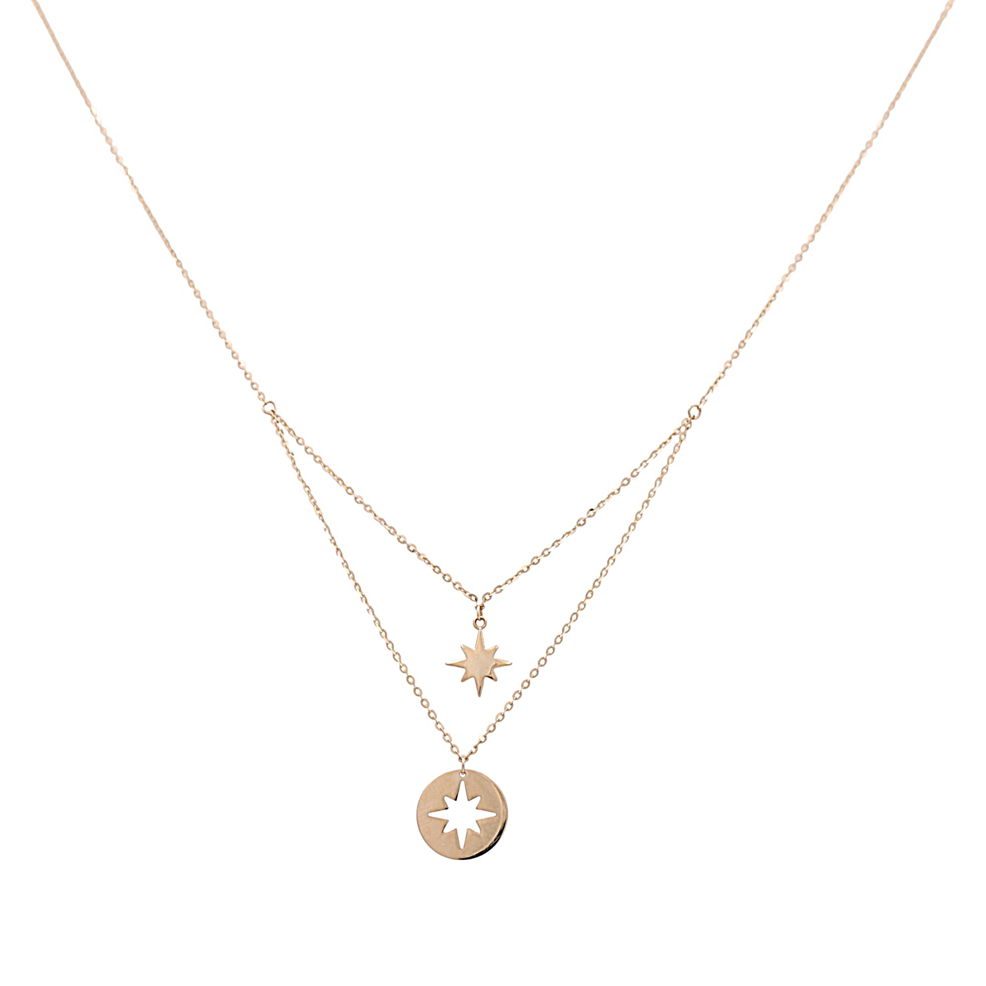 Yellow Gold 14K Double Necklace Infinit with Heart 18"