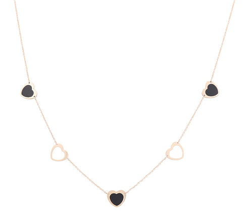 14K Yellow Gold Black Hearts Necklace