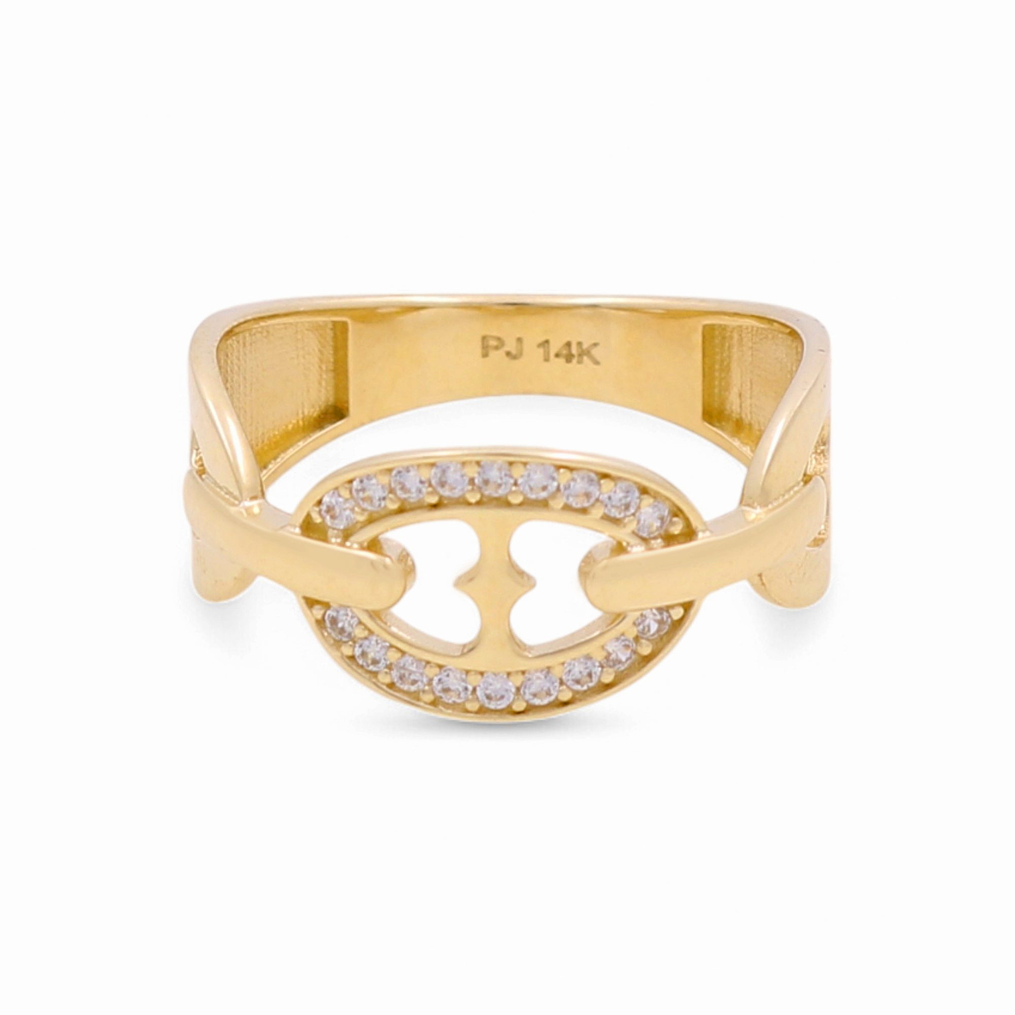14K Yellow Gold Bear with White Cz Fashion Women's Ring