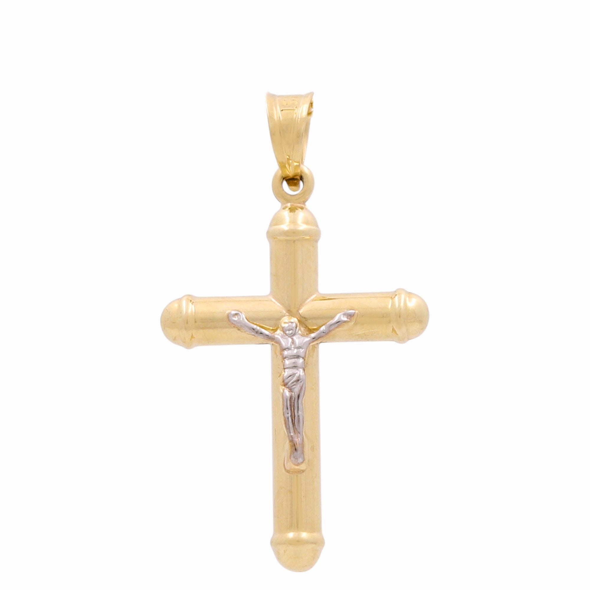 14K Two Tone White/Yellow Gold Crucifix Unisex Pendant