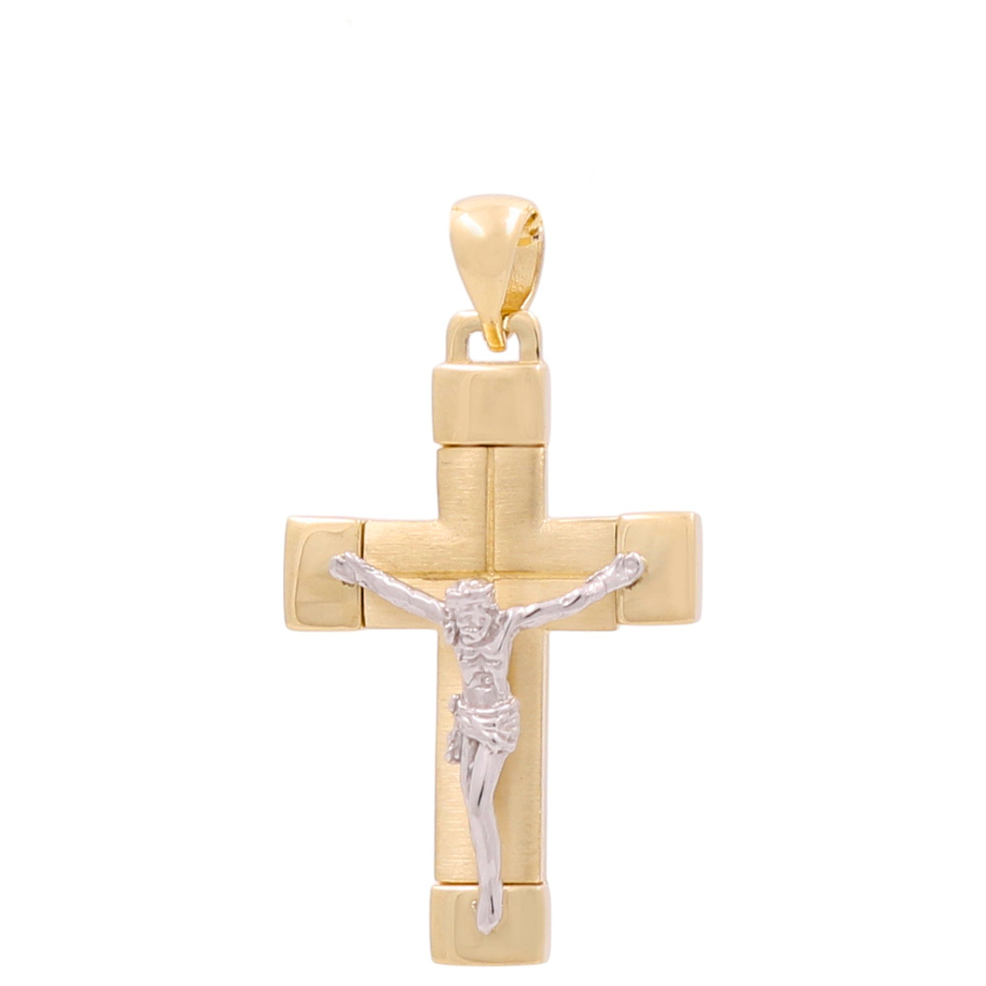 14K Two Tone White/Yellow Gold Crucifix Unisex Pendant