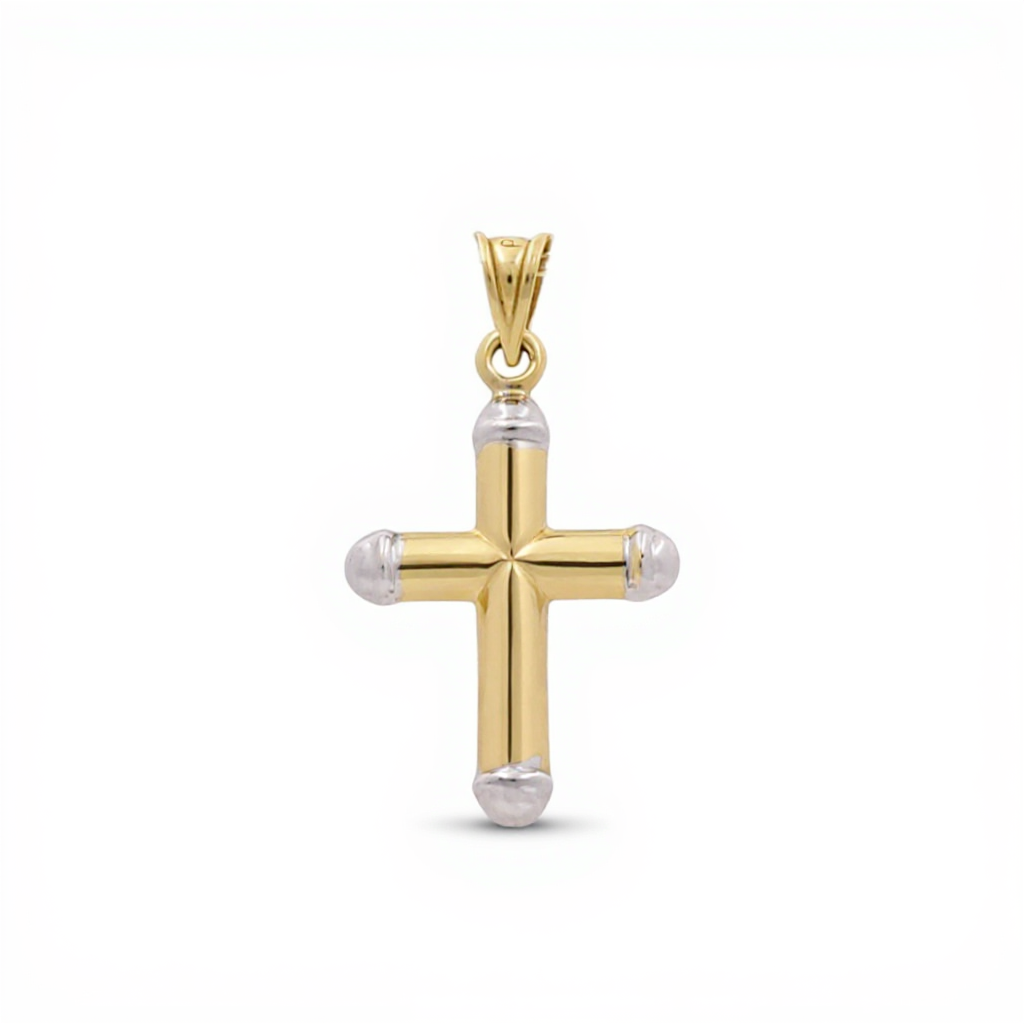 10K Two Tone White/Yellow Gold Cross Women's Pendant