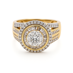 10K Yellow Gold Round Diamond Engagement Ring with 1.00Tw Baguette and Round Diamonds