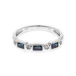 14K White Band Fashion Ring with 0.37Tw Baguette Sapphires and 0.06Tw Round Diamonds