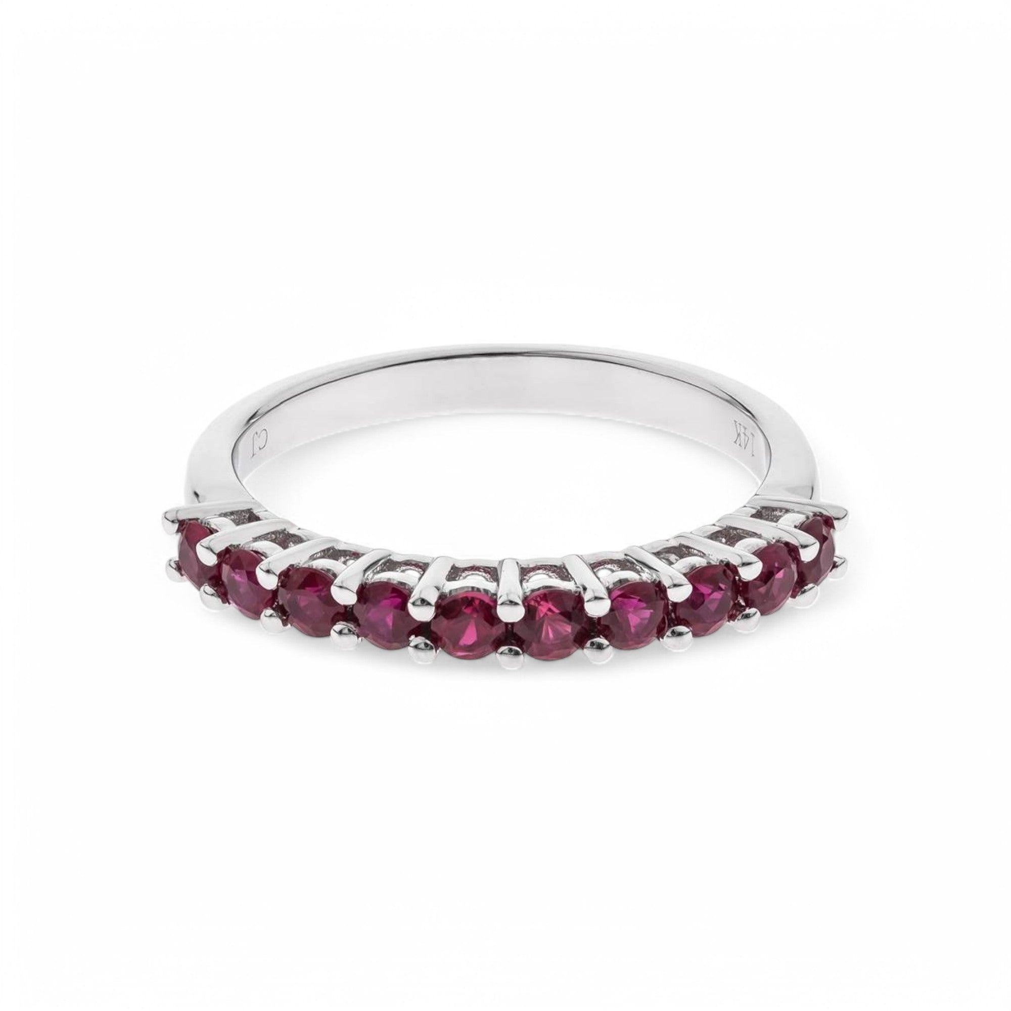 Add a touch of elegance and luxury to your collection with this stunning 14K white gold band featuring 0.73 carats of sparkling round rubies! Elevate any outfit and make a statement with this exquisite fashion ring. A timeless piece that will be treasured for years to come.