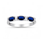14K White Band Fashion Ring with Oval Sapphires and 0.12Tw Baguette Diamonds