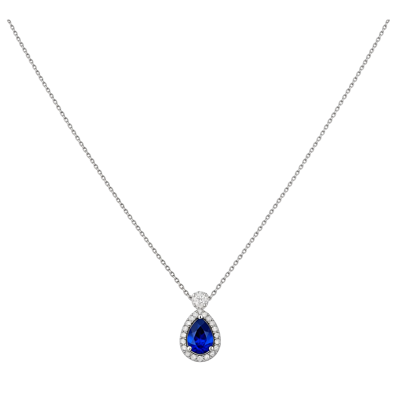Elevate your jewelry collection with this stunning 18-inch necklace crafted from 14K white gold. Featuring a sophisticated fancy link design, it showcases 0.55 carats of pear-shaped sapphires that add a touch of vibrant color and elegance. Accentuated by 0.22 carats of sparkling round diamonds, this necklace delivers a brilliant shimmer that catches the light beautifully. Perfect for making a refined statement at any occasion or enhancing your everyday style with luxury and grace. Its timeless design and exquisite gemstones ensure it will be a cherished piece for years to come.