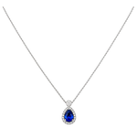 14K White Gold Fancy Link Necklace 18" with 0.55Tw Pear Sapphires and 0.22Tw Round Diamonds