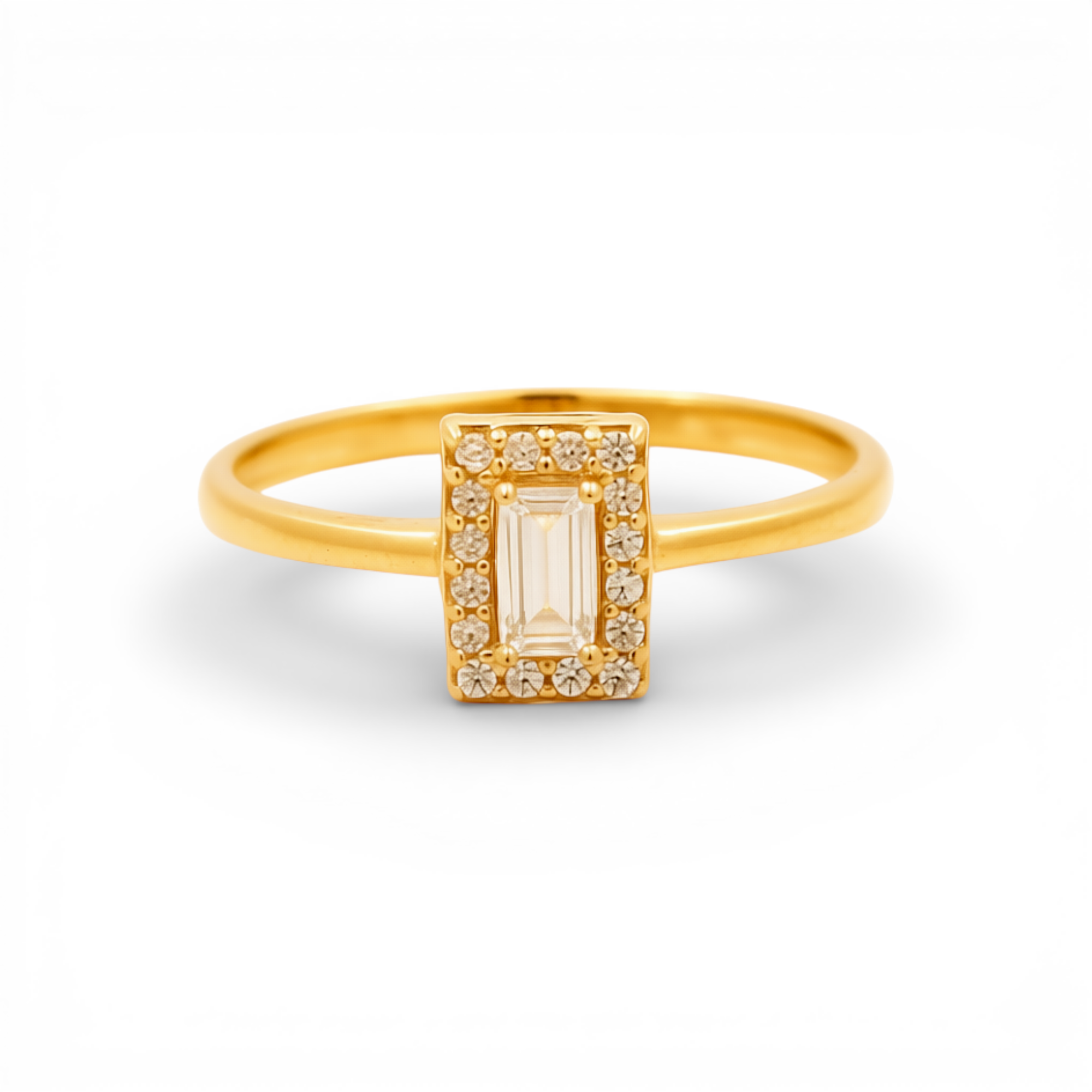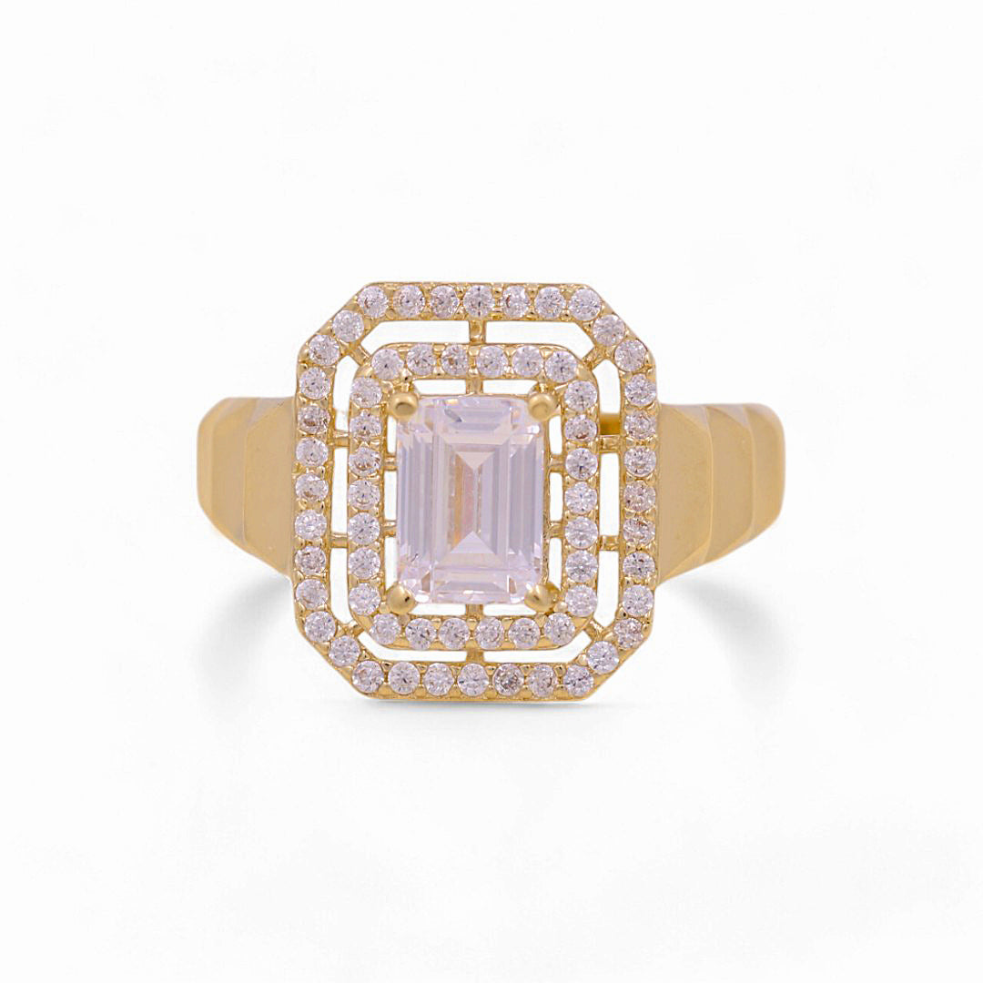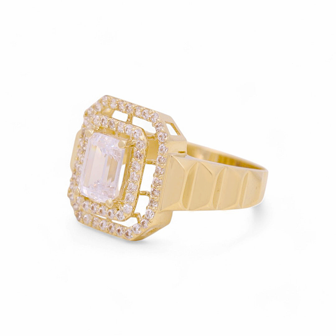 14K Yellow Gold Square with CZ Fashion Women's Ring