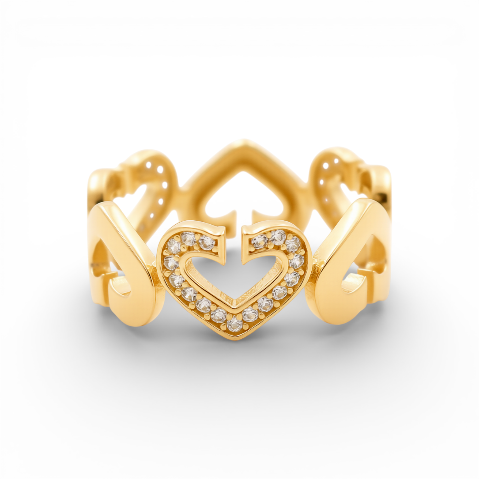 14K Yellow Gold Heart with CZ Fashion Women's Ring