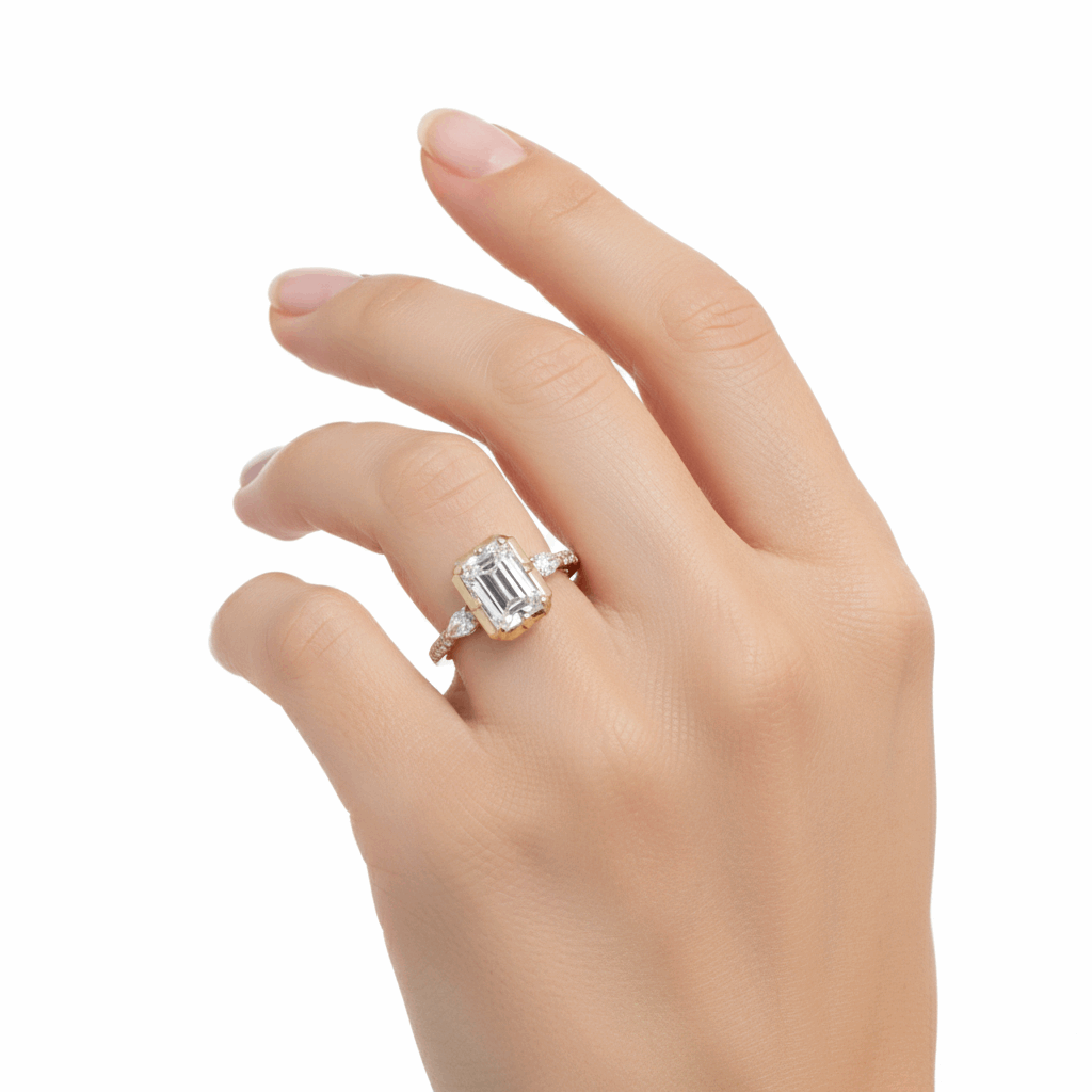 Experience unparalleled luxury with these 14K Yellow Gold Emerald Rings, featuring an impressive 3.00 total weight of emerald lab diamonds that showcase vibrant, rich green hues. Accented by an additional 0.50 total weight of pear and round lab-grown diamonds, these rings sparkle brilliantly from every angle, creating a captivating interplay of light and color. Meticulously crafted with ethical lab-grown stones, this exquisite design combines timeless elegance with modern sophistication. Perfect for making a bold statement at any event or adding a touch of refined beauty to your everyday ensemble, these rings are a celebration of both style and sustainability.