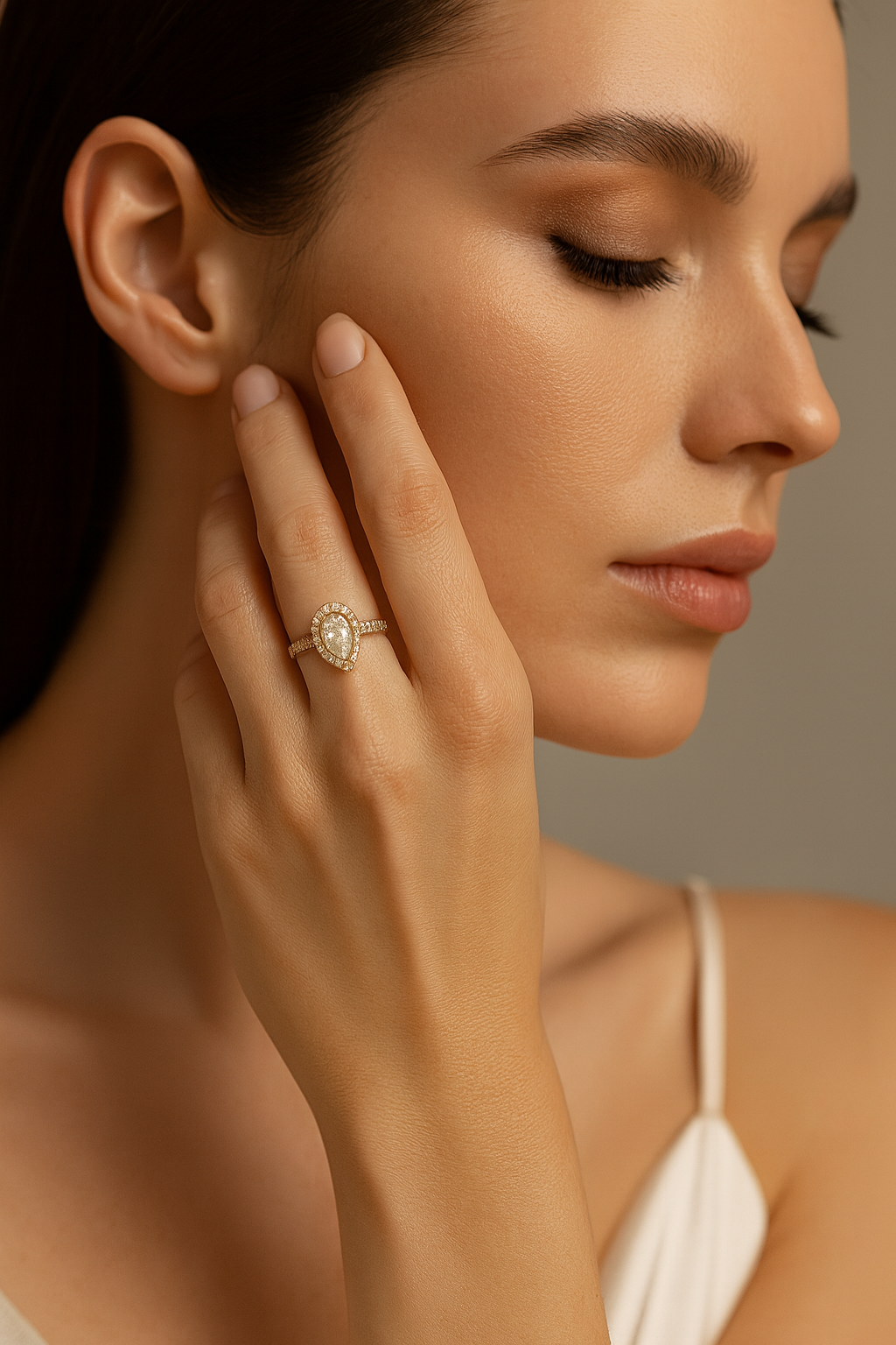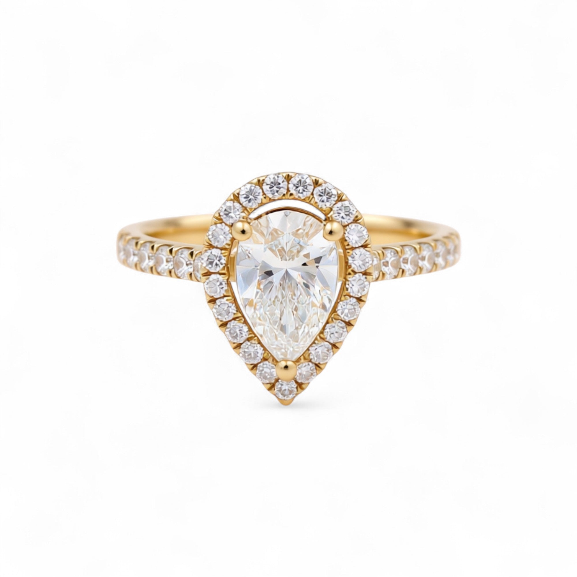 Make a distinctive statement with this graceful 14K yellow gold pear ring, adorned with 1.47 carats of radiant round lab diamonds that showcase brilliant sparkle and exceptional clarity. The elegant pear cut offers a flattering silhouette that elongates the finger while the warm embrace of yellow gold creates a romantic, vintage-inspired aesthetic. Lab diamonds provide the same stunning optical properties and lasting durability as mined diamonds, while delivering remarkable value and responsible sourcing you can wear with pride. The thoughtfully arranged round diamonds amplify the center stone's brilliance, creating a mesmerizing display of light that captivates at every glance. Ideal for those seeking a ring that balances sophistication with individuality, this design transcends trends and becomes a cherished keepsake. Whether marking a special occasion or celebrating your personal style, this piece offers timeless beauty and meaningful luxury.