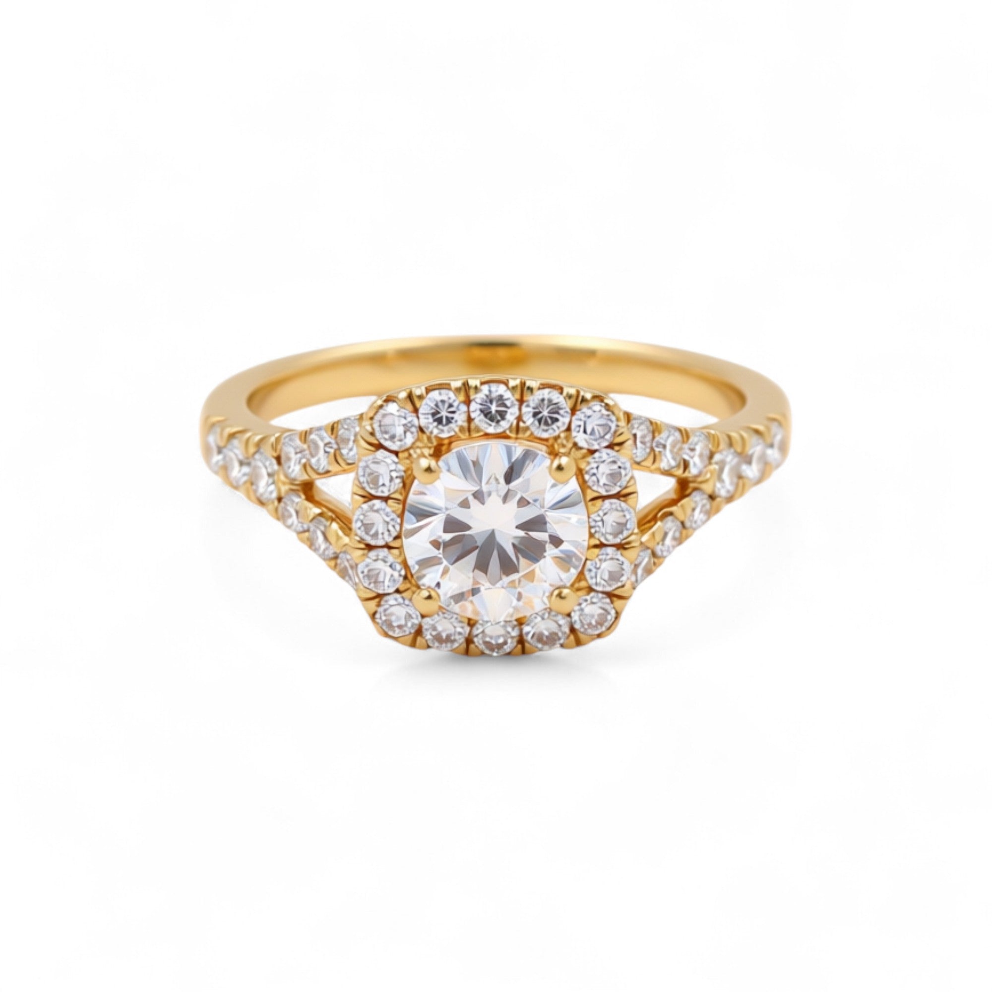 14K Yellow Gold Square Rings with 1.25Tw Round Lab Diamonds