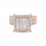 Indulge in architectural elegance with this striking 14K yellow gold square ring, featuring 2.32 carats of expertly combined baguette and round lab diamonds that create a dynamic interplay of light and dimension. The geometric square setting showcases modern design sensibilities while the warm radiance of yellow gold infuses timeless sophistication and understated luxury. Baguette diamonds add linear precision and contemporary flair, while round diamonds contribute classic sparkle and brilliance—together they form a harmonious composition that commands attention. Lab diamonds deliver exceptional quality and durability matching mined diamonds, while offering superior value and ethical sourcing that aligns with conscious luxury. The mixed diamond cuts create visual interest and depth, making this ring a true conversation piece that reflects your refined taste and individuality. Perfect for those who appreciate bold design and meaningful craftsmanship, this ring transcends ordinary and becomes an unforgettable symbol of your unique style.