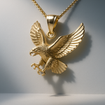 Soar to new heights with this majestic 10K Yellow Gold Eagle Pendant—a powerful symbol of freedom, strength, and unwavering vision. Expertly crafted from quality 10K yellow gold, this pendant captures the noble essence of an eagle with impressive detail and commanding presence. Perfect for those who embody courage, leadership, or patriotic pride, this piece serves as a daily reminder to reach for your dreams and embrace your full potential. The warm radiance of 10K yellow gold brings out the eagle's intricate features, creating a sophisticated accessory that commands attention without overwhelming your style. Whether worn as a personal talisman, a gift for someone you admire, or a celebration of your own strength and determination, this eagle pendant makes an unforgettable impression. Versatile enough for everyday wear yet substantial enough to make a bold statement, this pendant works beautifully as a standalone focal point or layered with other pieces. An ideal choice for those seeking meaningful jewelry that inspires and empowers, this eagle pendant delivers timeless appeal with authentic craftsmanship.